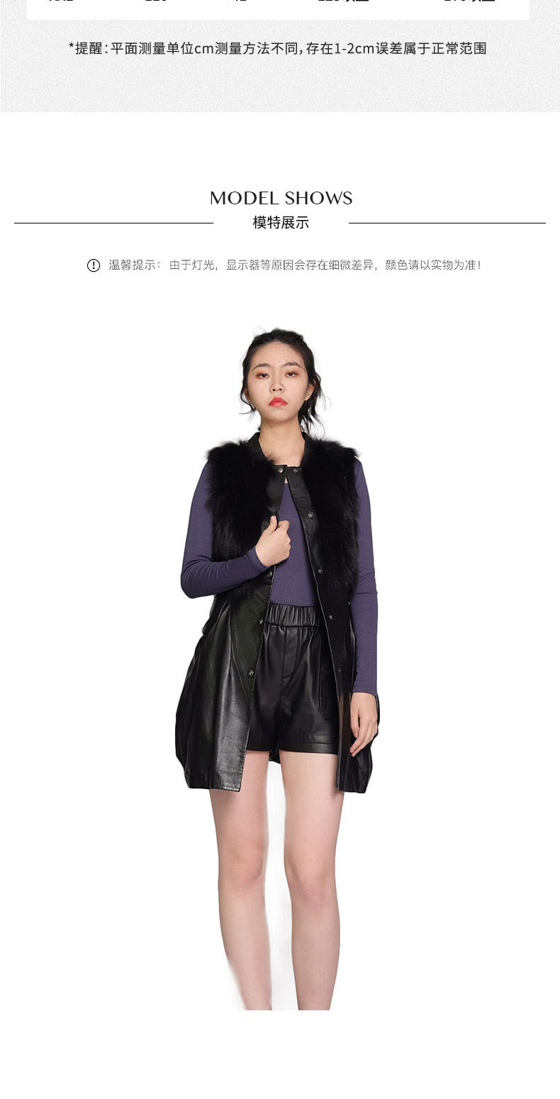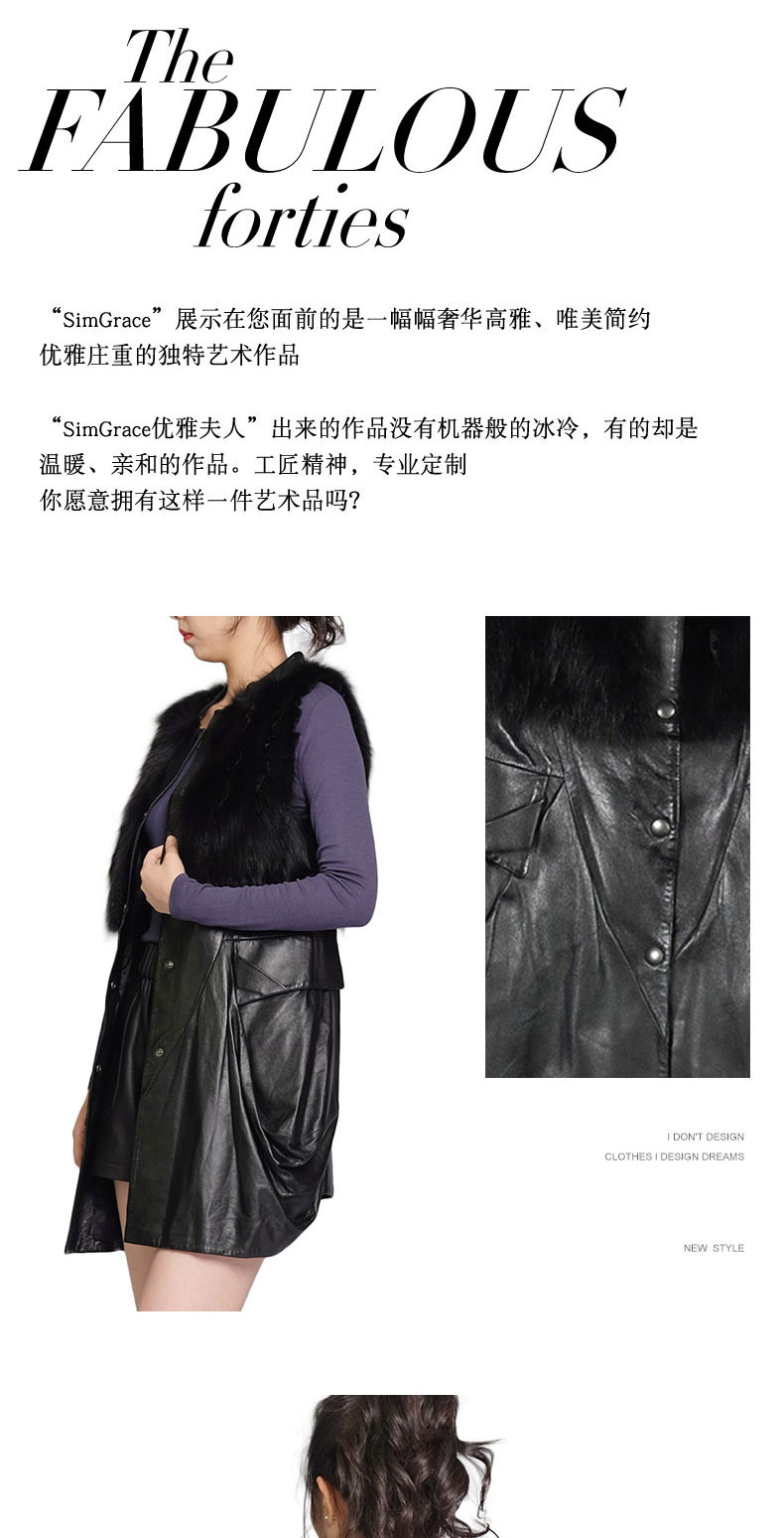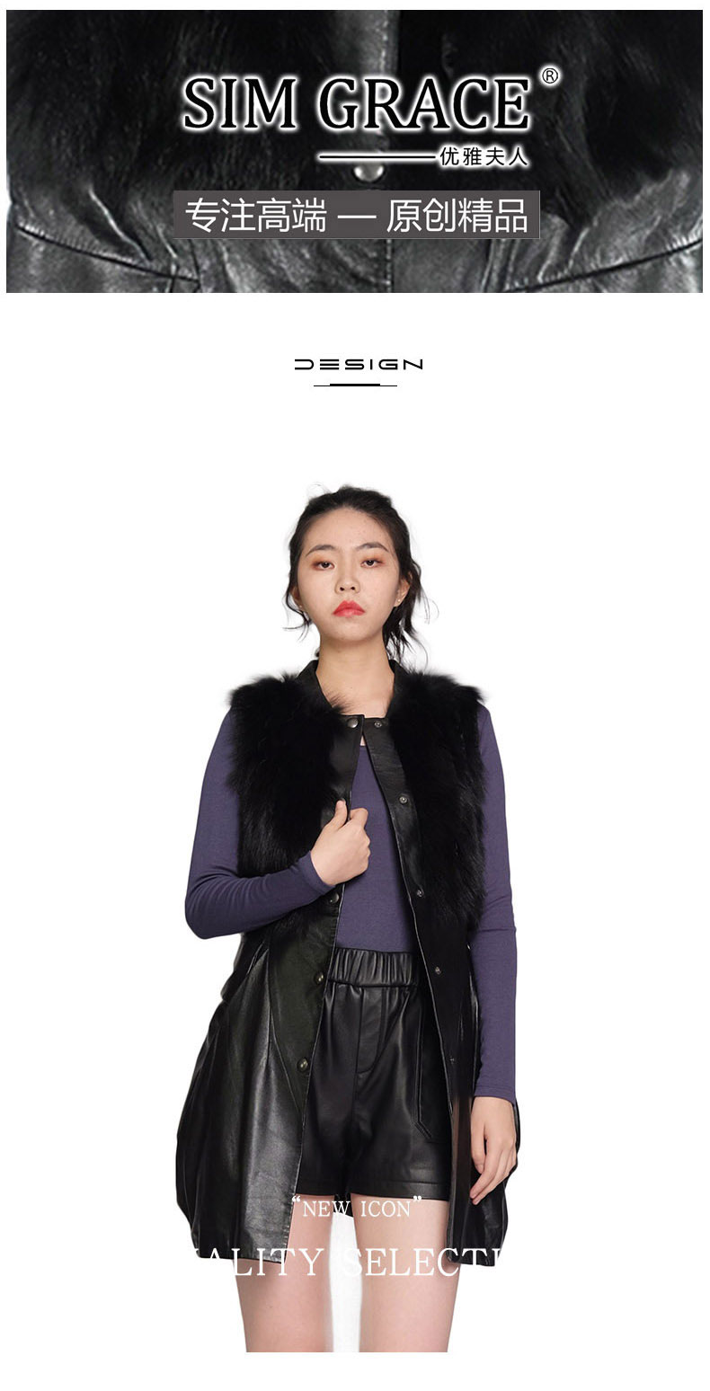 SIM GRACE 优雅夫人 黑色绵羊真皮配狐狸毛小立领英伦风中长款显瘦马甲