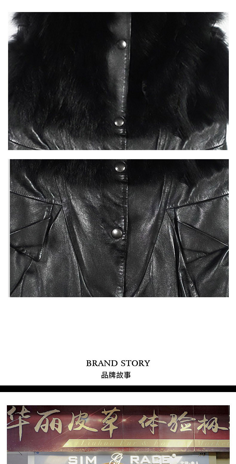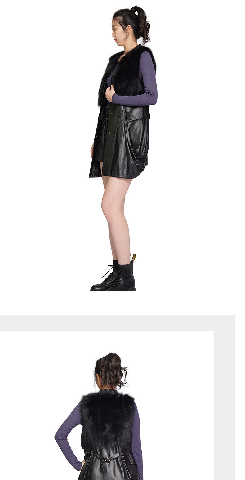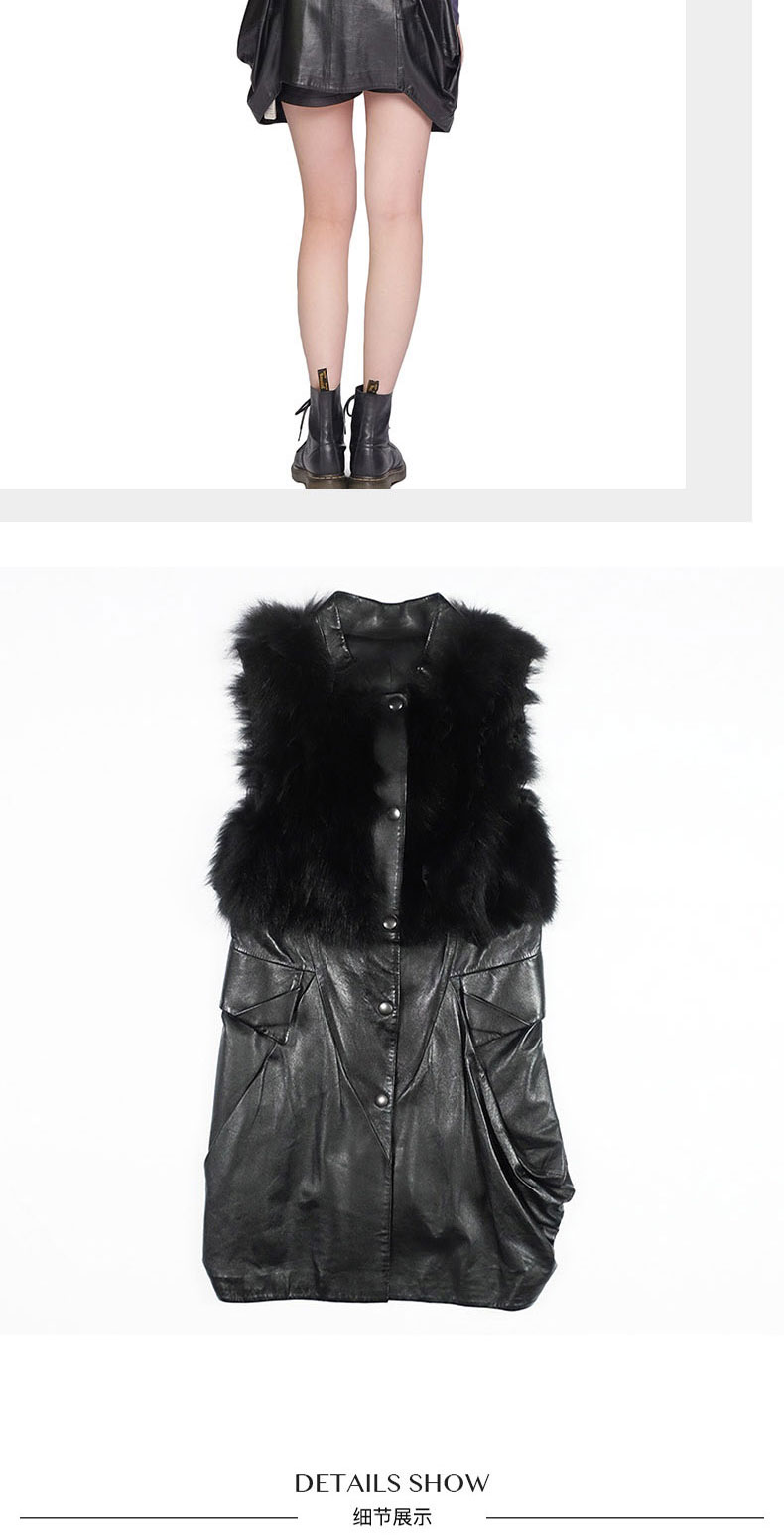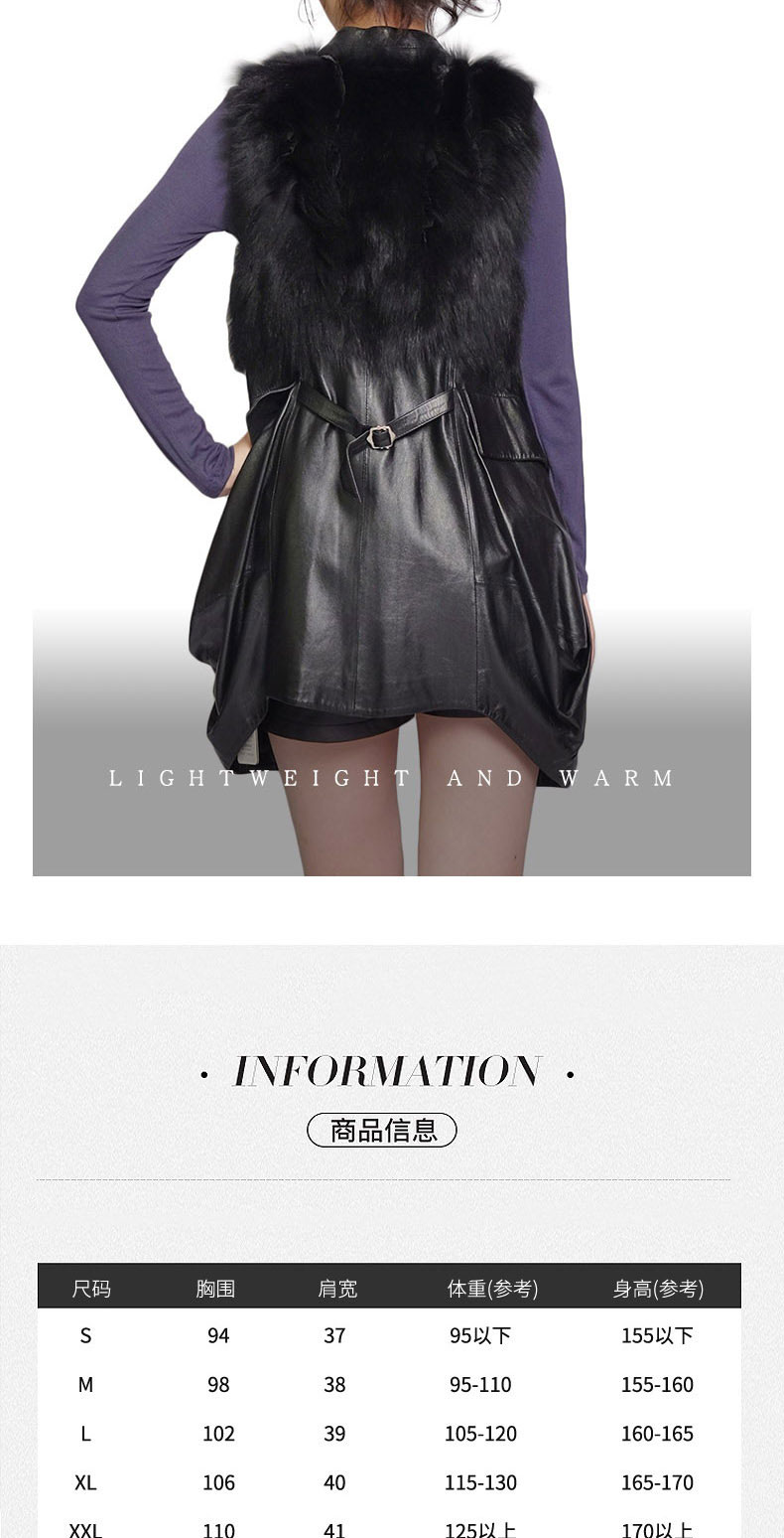 SIM GRACE 优雅夫人 黑色绵羊真皮配狐狸毛小立领英伦风中长款显瘦马甲
