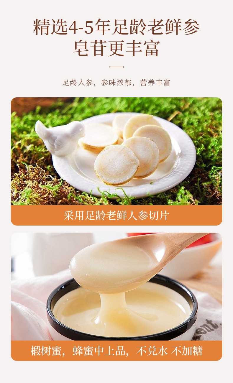 【拍1发3】福东海 人参蜜片45克/盒即食滋补蜂蜜人参