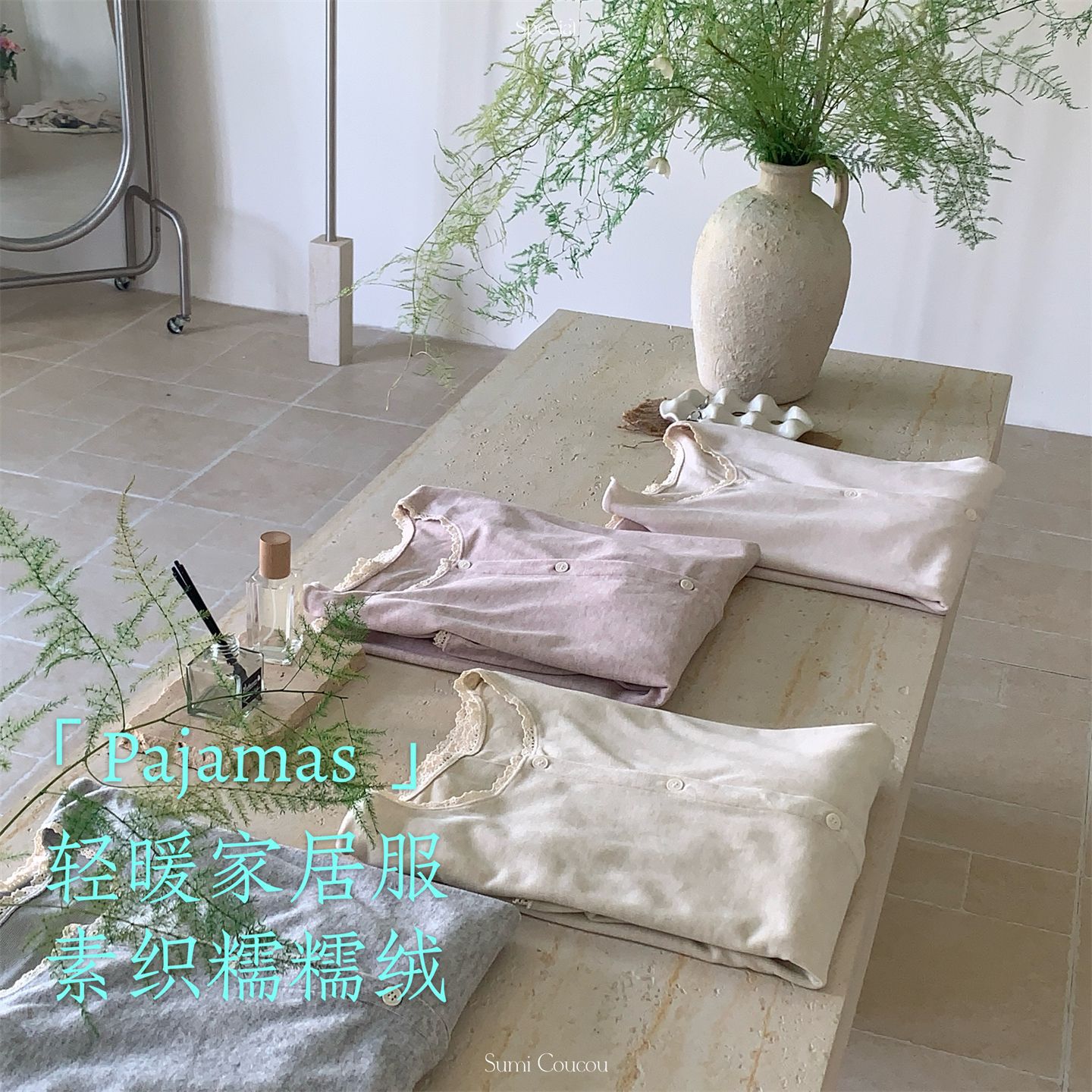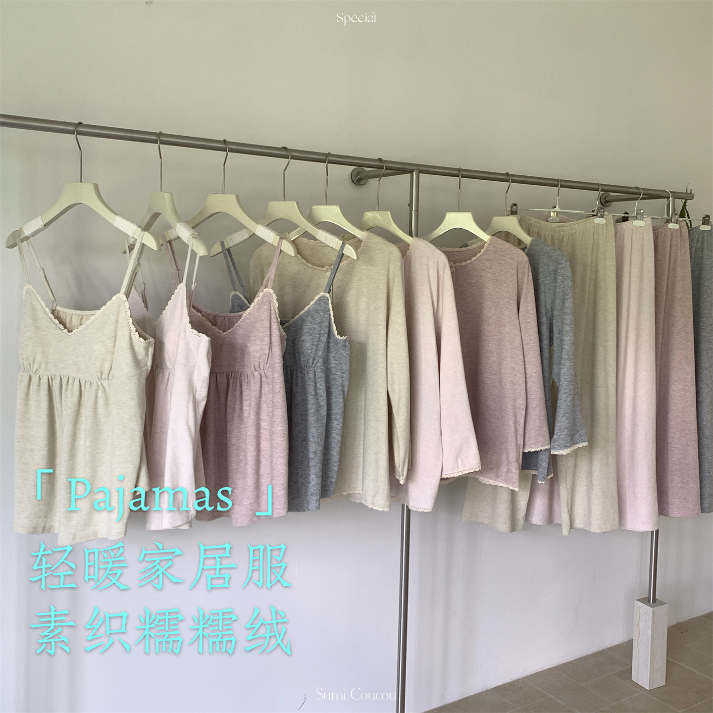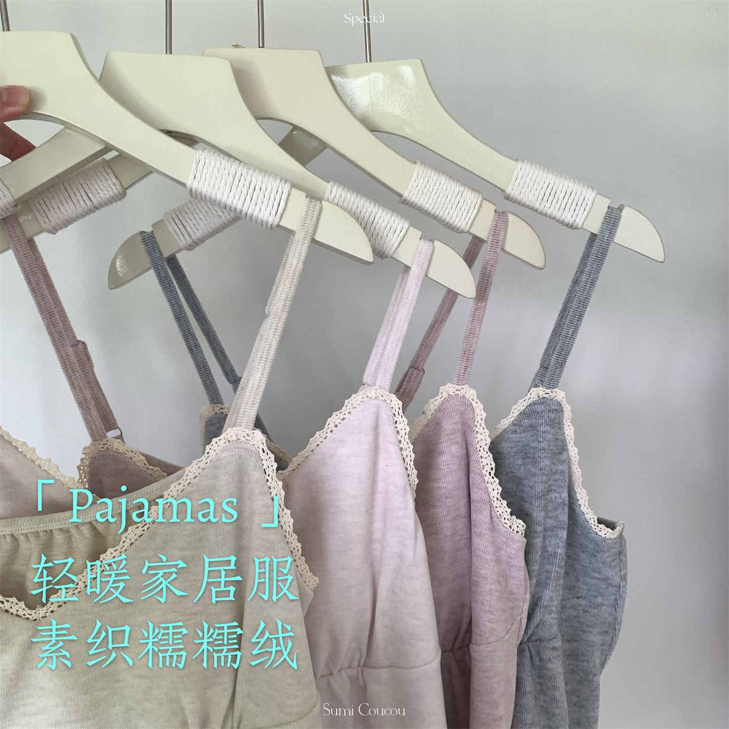 日系双面绒!秋冬素织糯糯绒睡衣三件套 带胸垫可外穿家居服吊带+长裤+外袍 加绒加厚网红风