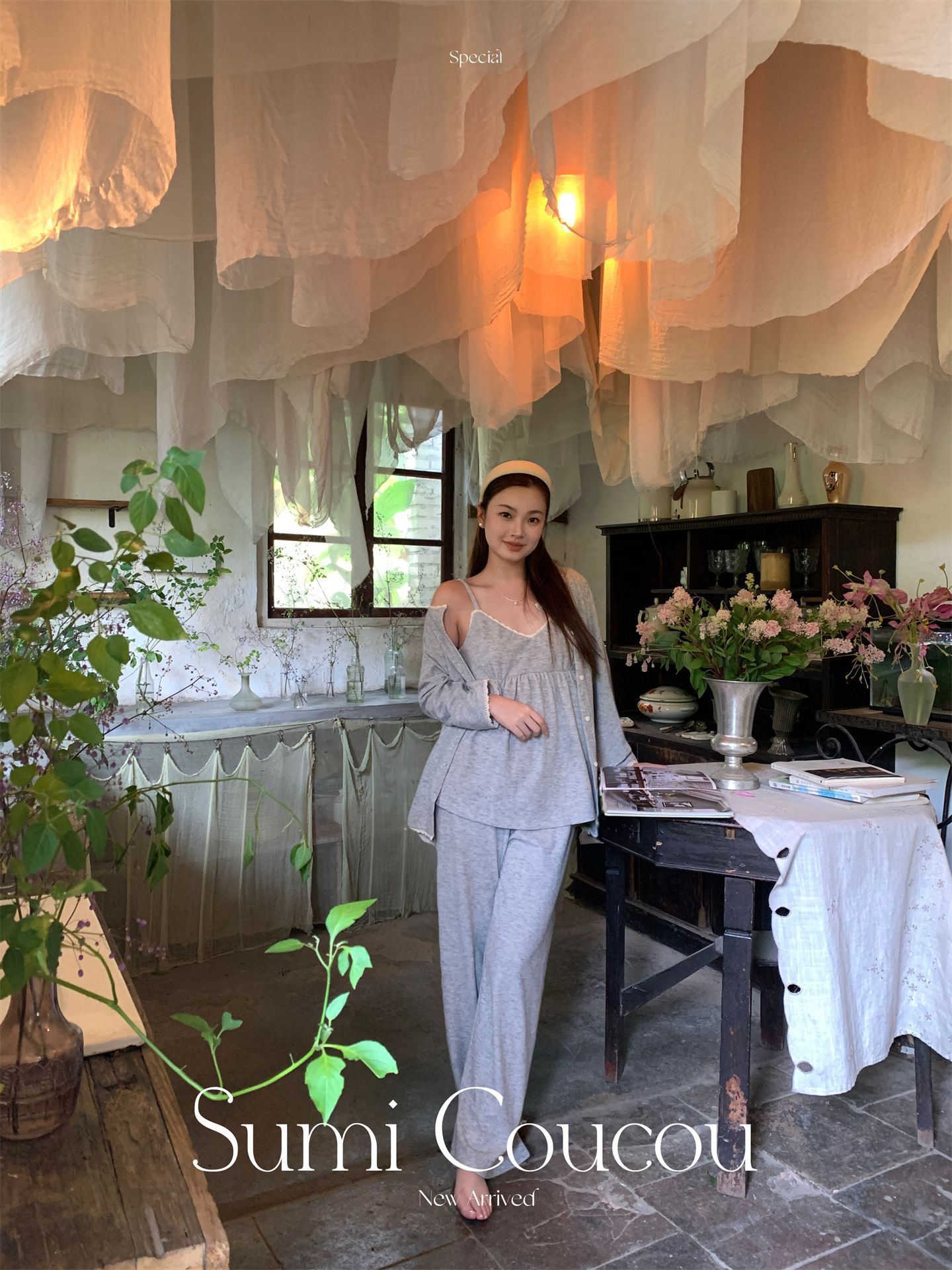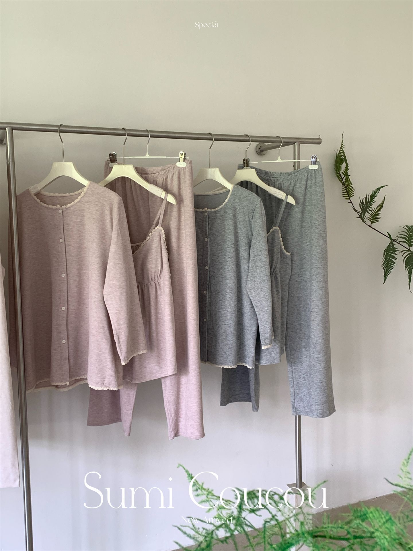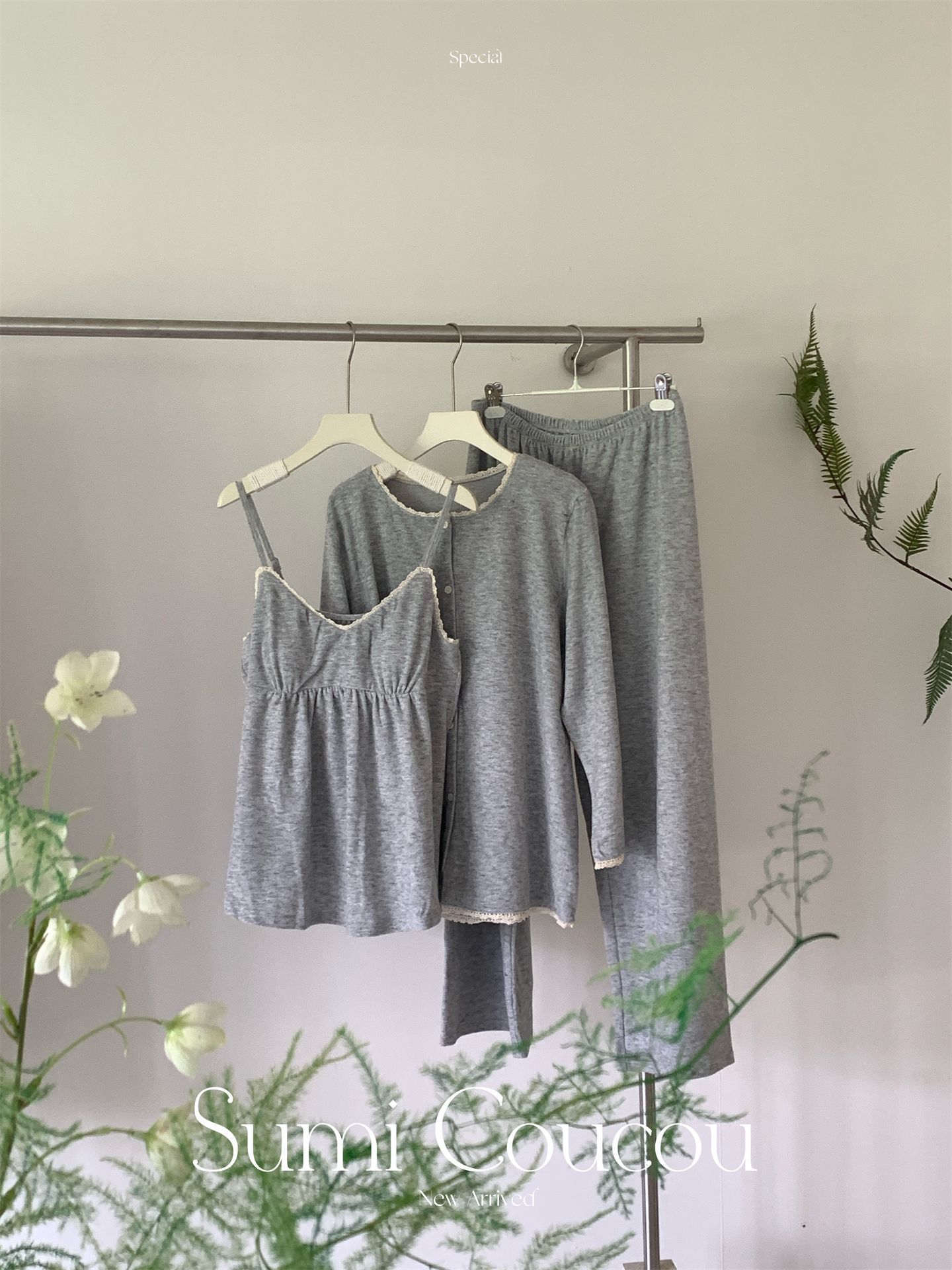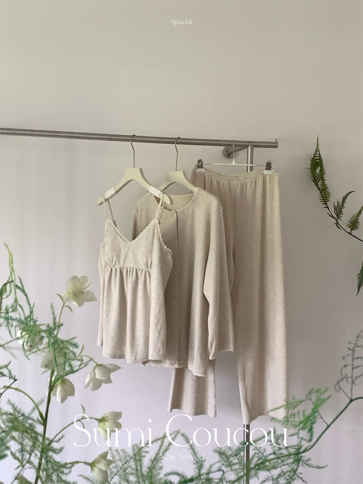 日系双面绒!秋冬素织糯糯绒睡衣三件套 带胸垫可外穿家居服吊带+长裤+外袍 加绒加厚网红风