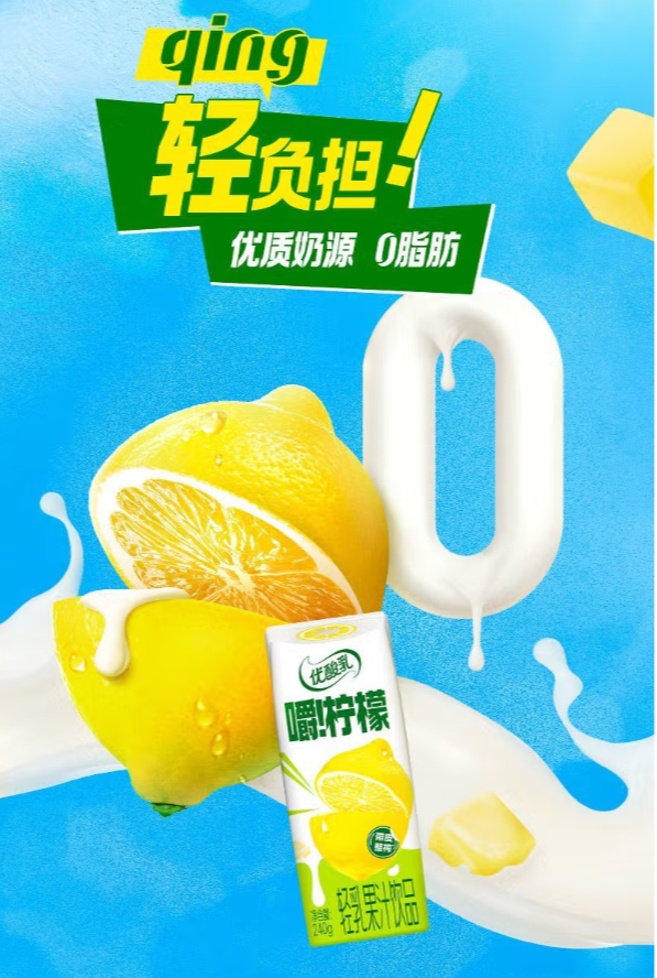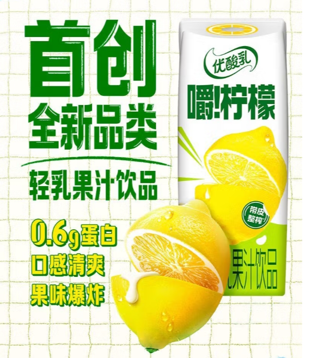 伊利优酸乳嚼柠檬轻乳果汁饮品240g