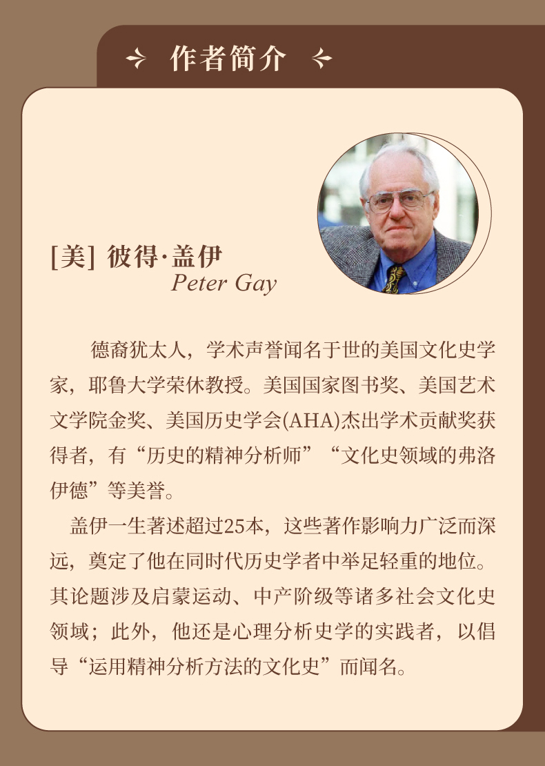 典型的盖伊风格:笔触优美,深具洞见,例子具体生动而富有启发性。历史学家同行和盖伊粉丝会一致发现,书中内容见解令人耳目一新,无一字为陈见,无一字非未发之言;对于那些缺少耐心阅读盖伊多卷本大部头的读者而言,这个单卷本无疑是个福音。