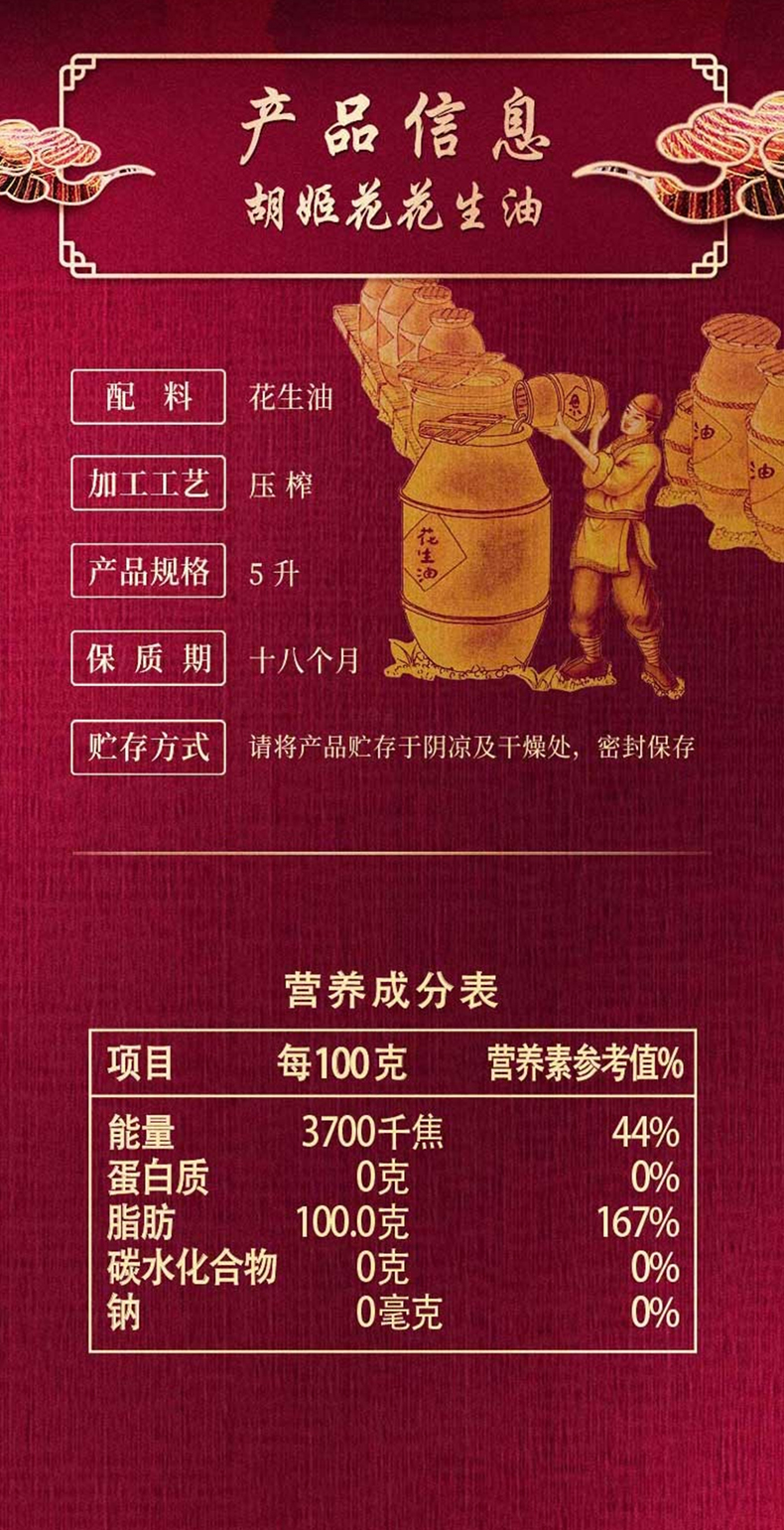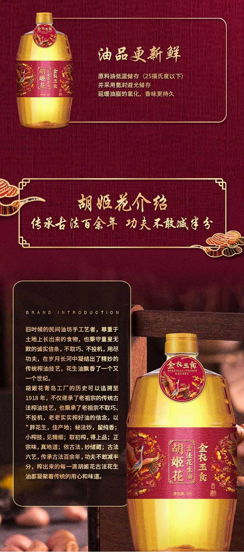 胡姬花金衣玉食古法小榨花生油5L大桶装家用食用油 花生油