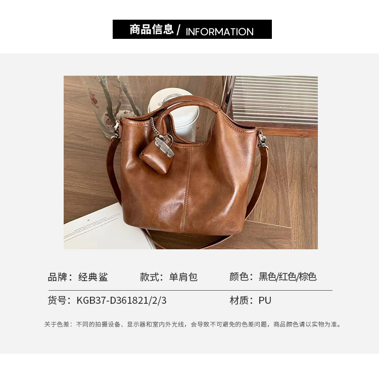 经典鲨2024年秋季新款大容量简约复古手提斜挎包 KGB37-D361821