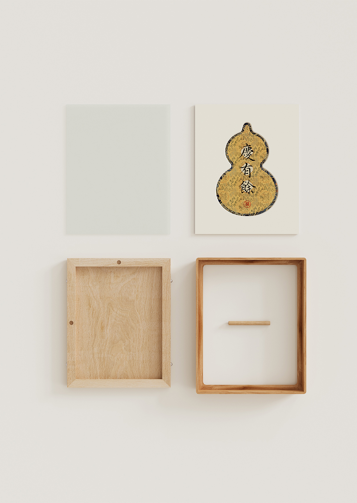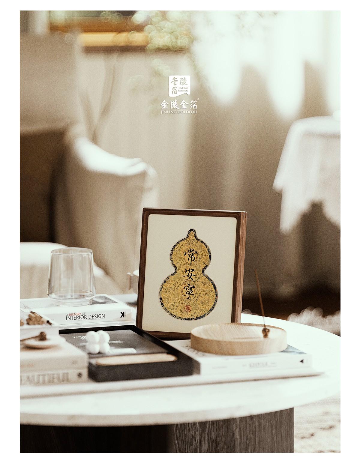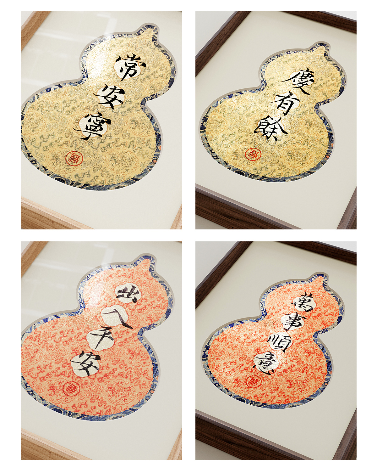 金陵金箔复古书法字画桌面摆台装饰品中国风葫芦木质相框摆件礼品
