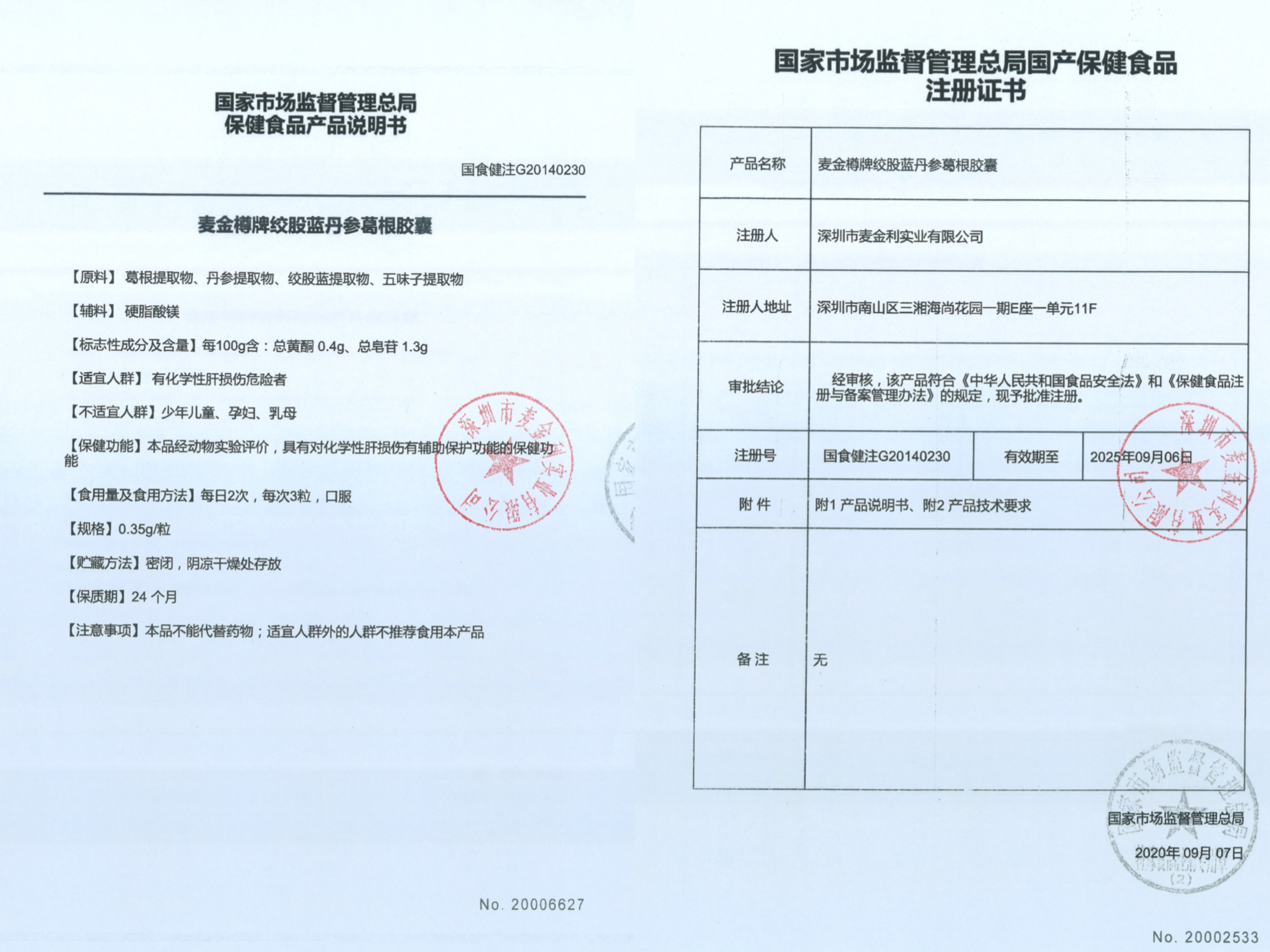 【产品名称】麦金利麦金樽牌绞股蓝丹参葛根胶囊