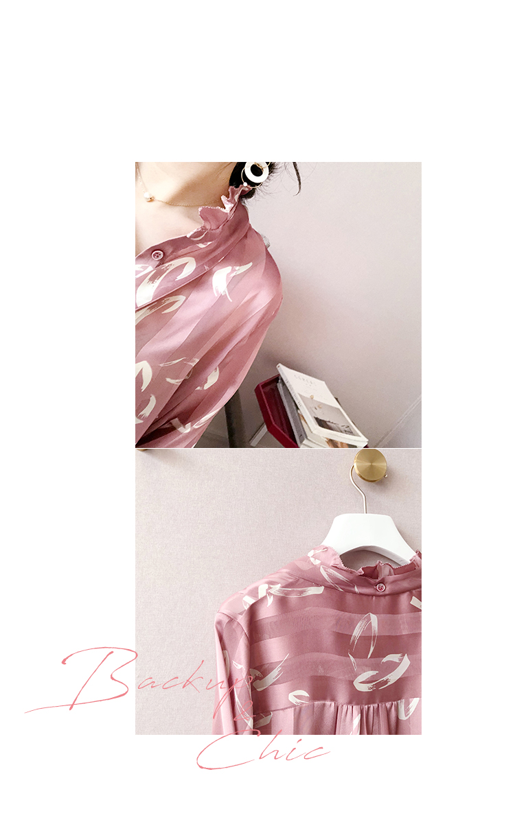 闪购返场 莫奈玫瑰 竖纹肌理艺术图案 多种穿法设计干枯玫瑰粉色衬衫