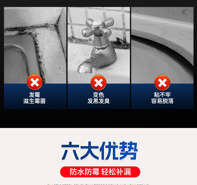 塑钢泥卫生间厨房边缝防水防霉补漏万能胺马桶封边填缝嵌缝密封胶 150g