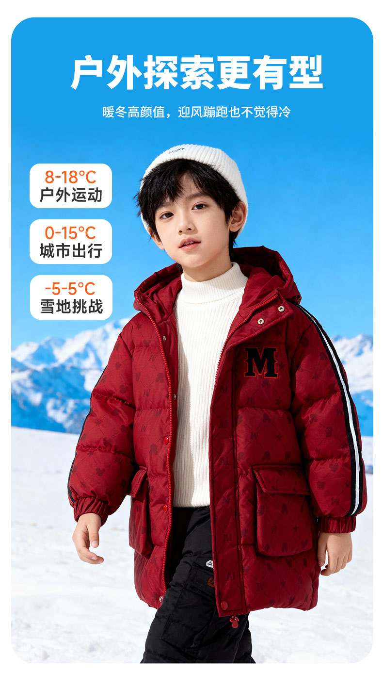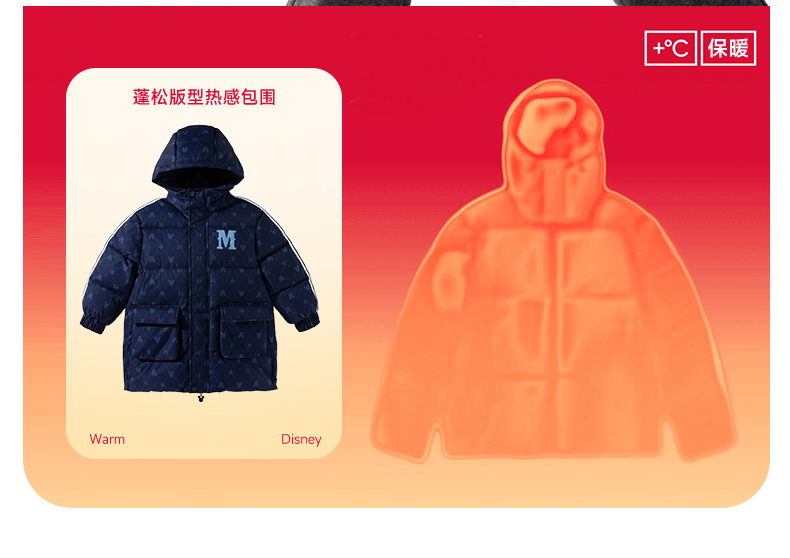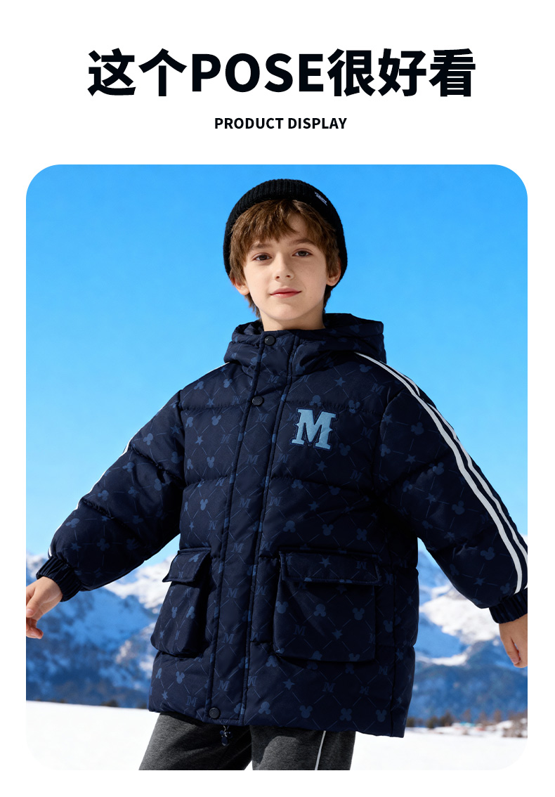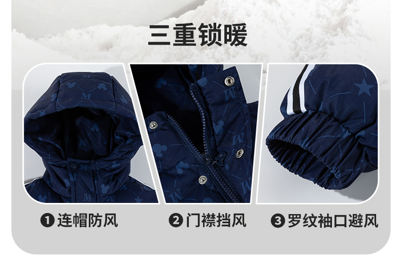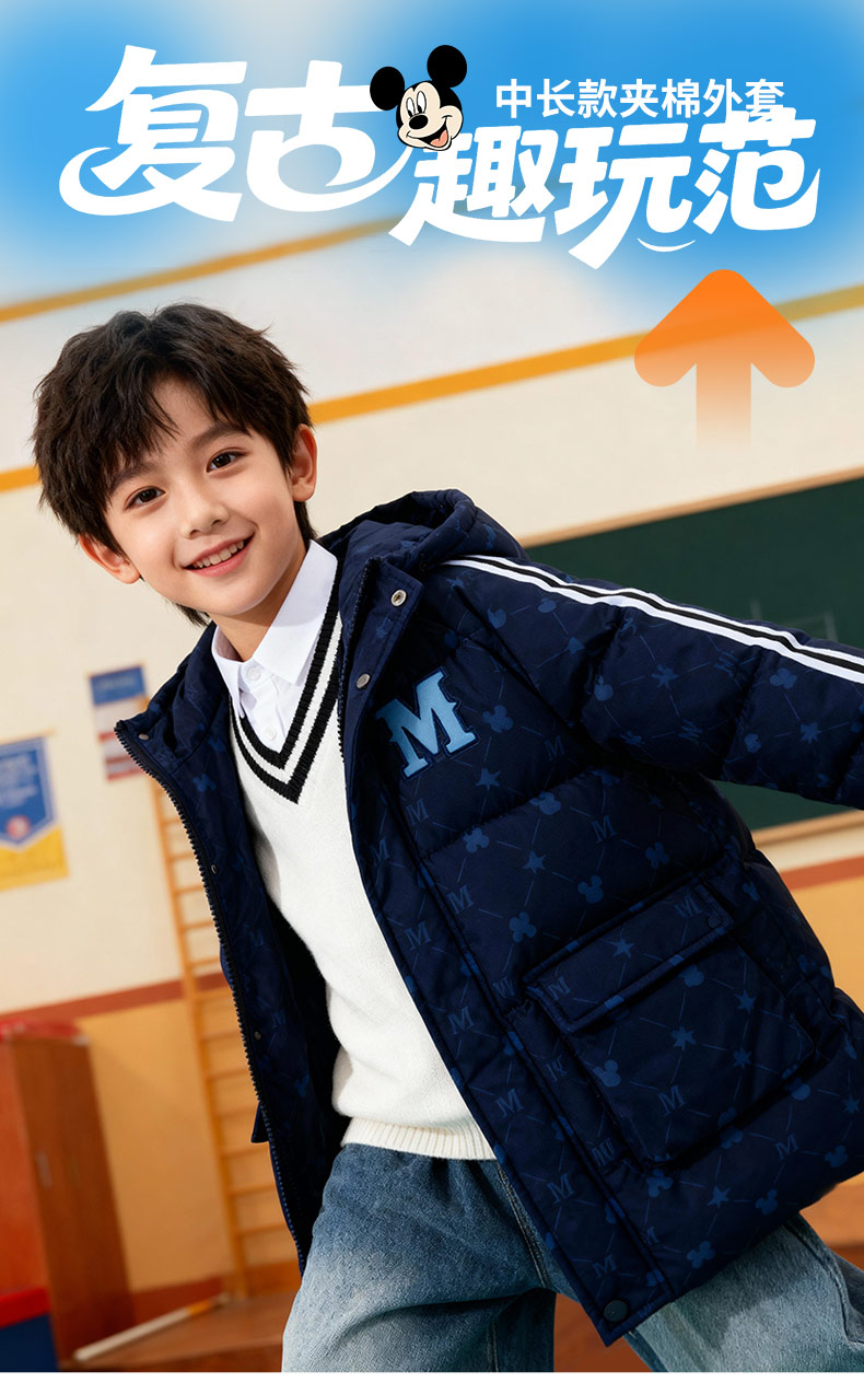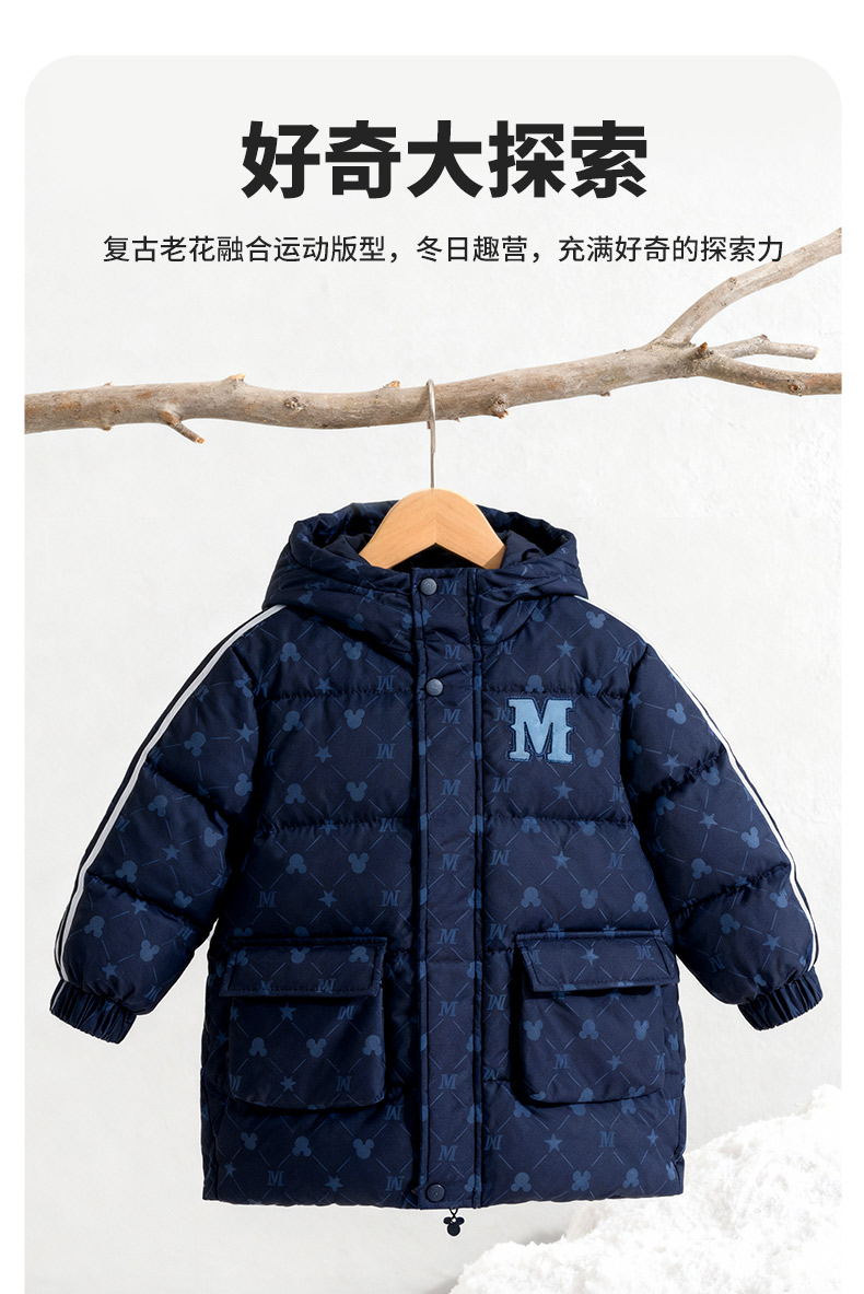 迪士尼冬季男童新款夹棉外套中长款棉服