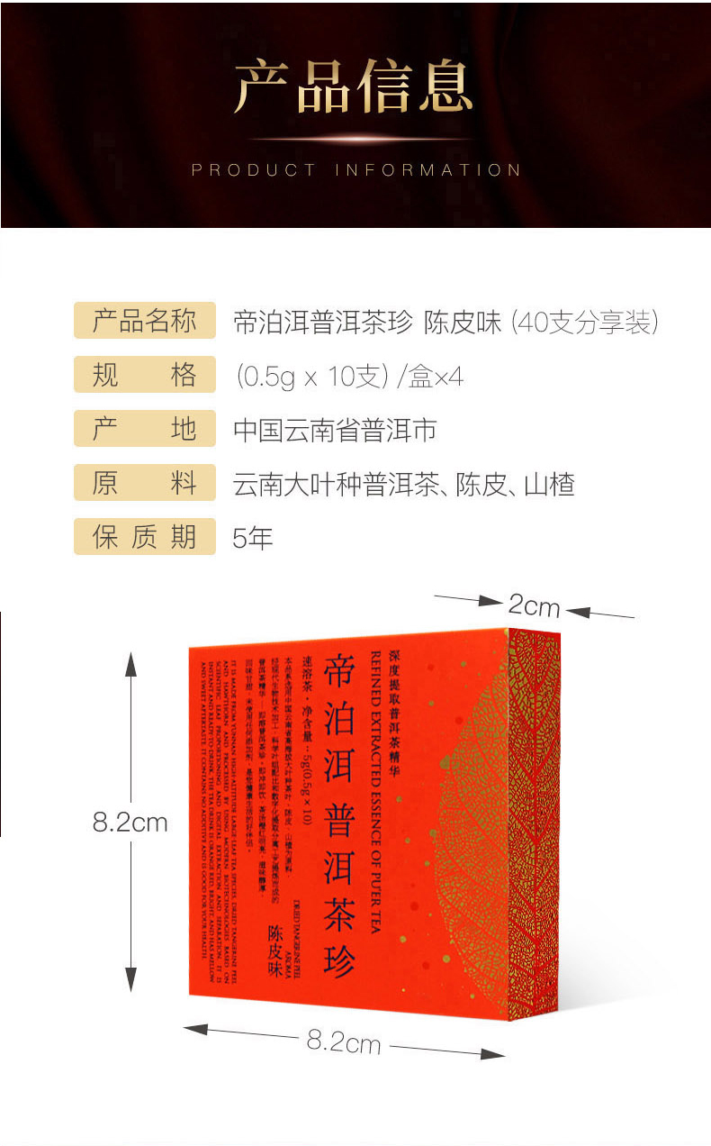 天士力帝泊洱即溶普洱茶珍40支盒装陈皮普洱速溶茶粉包邮