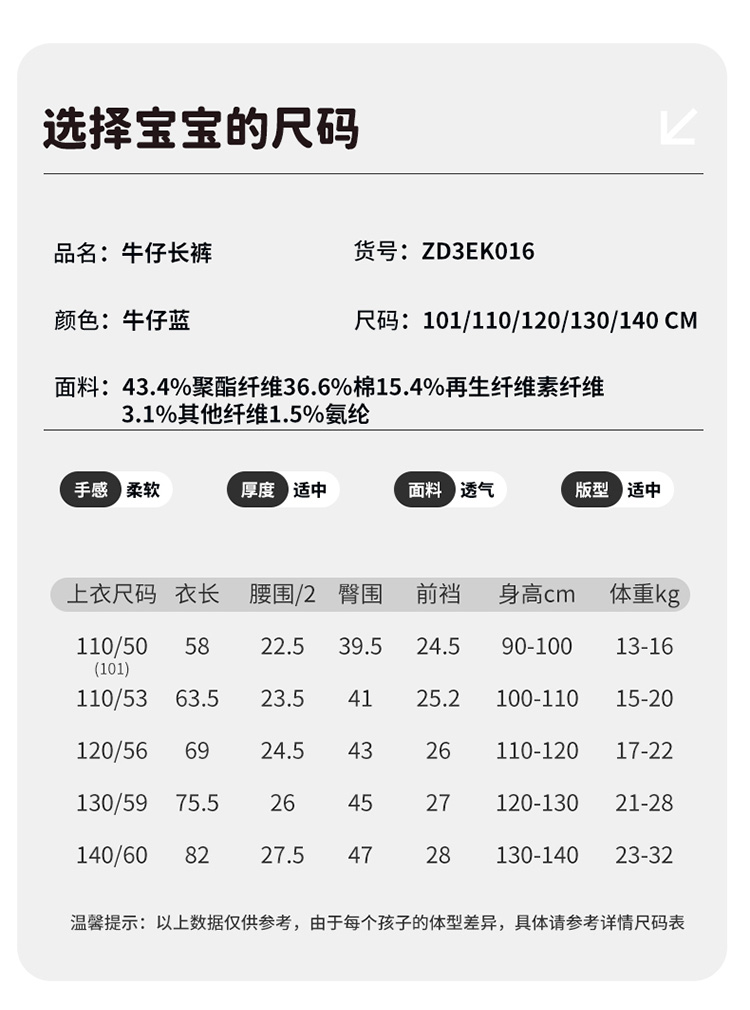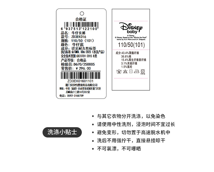 迪士尼春秋女童牛仔长裤ZD3EK016