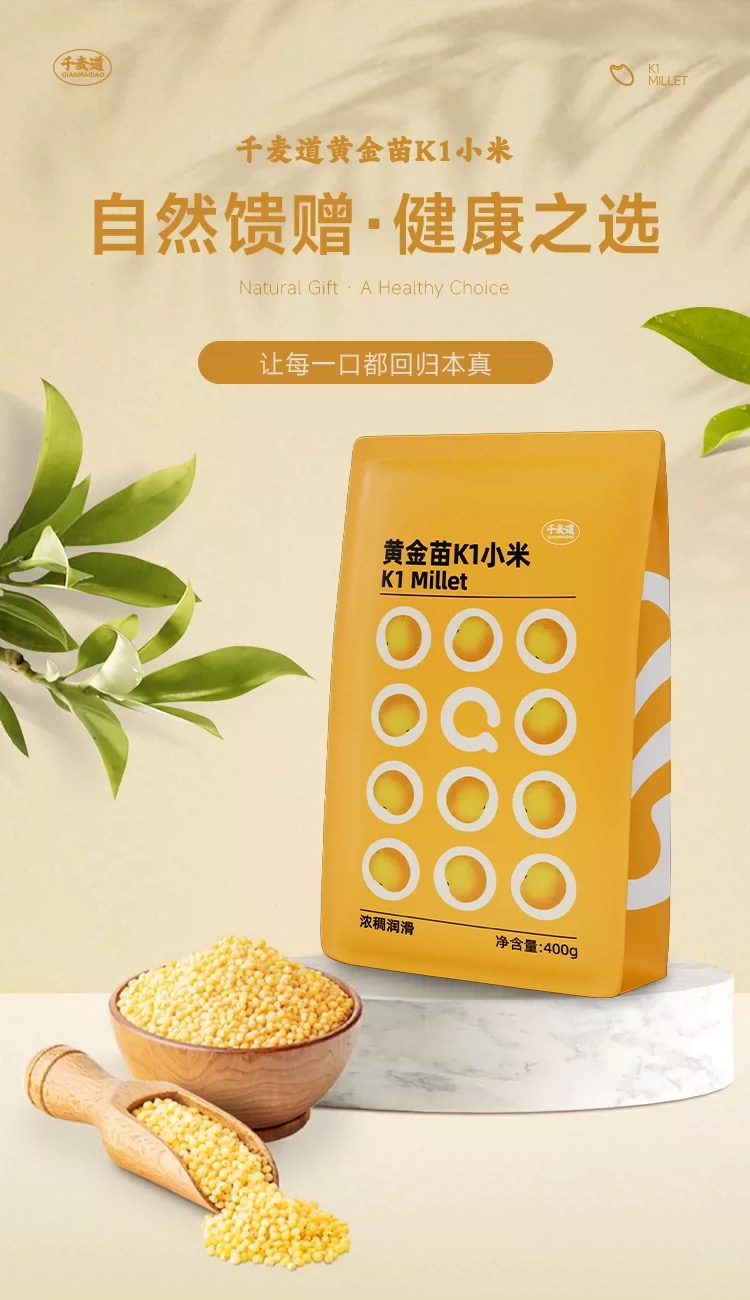 【积分兑换】千麦道当季东北黄金苗K1小米 北纬41°黄金小米 品质保证400g