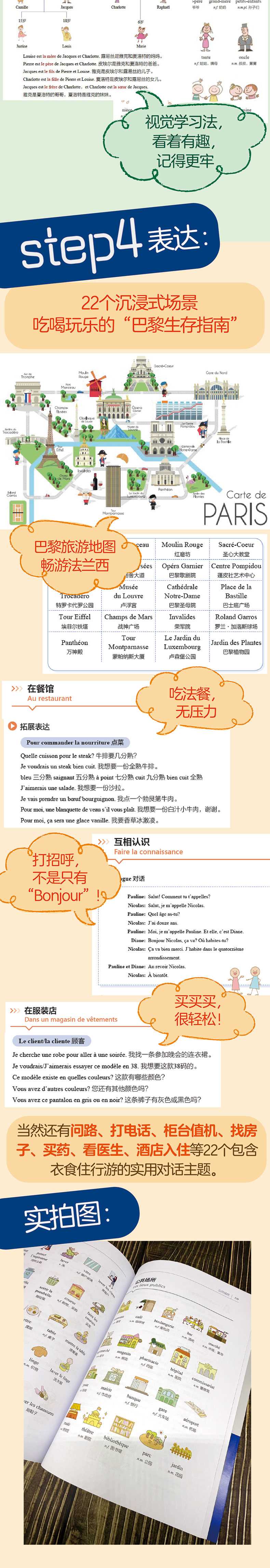 词汇篇颜色113交通工具114动物116日期与季节118天气情况120饮食121水果与蔬菜122饮品123身体124外貌描述126服饰127情感129运动130业余爱好131巴黎旅游地图132校园生活133职业134家庭135房间中的家具136家务137公共场所139数字141