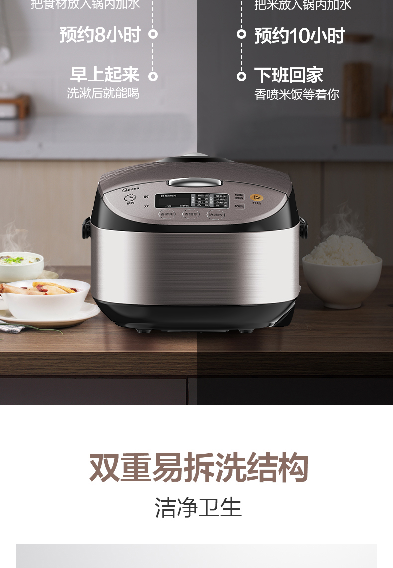 美的Midea 电饭煲电饭锅4L智能预约电饭煲厨房匠铜圆灶釜内胆 MB-RS4057