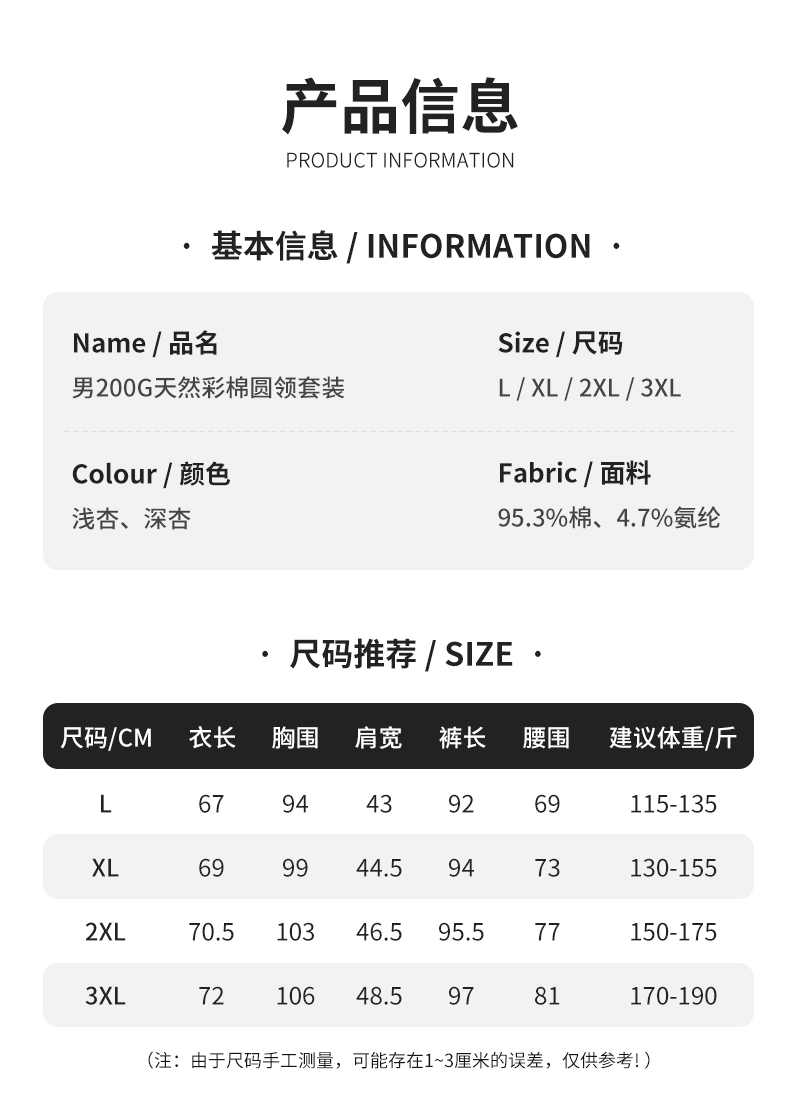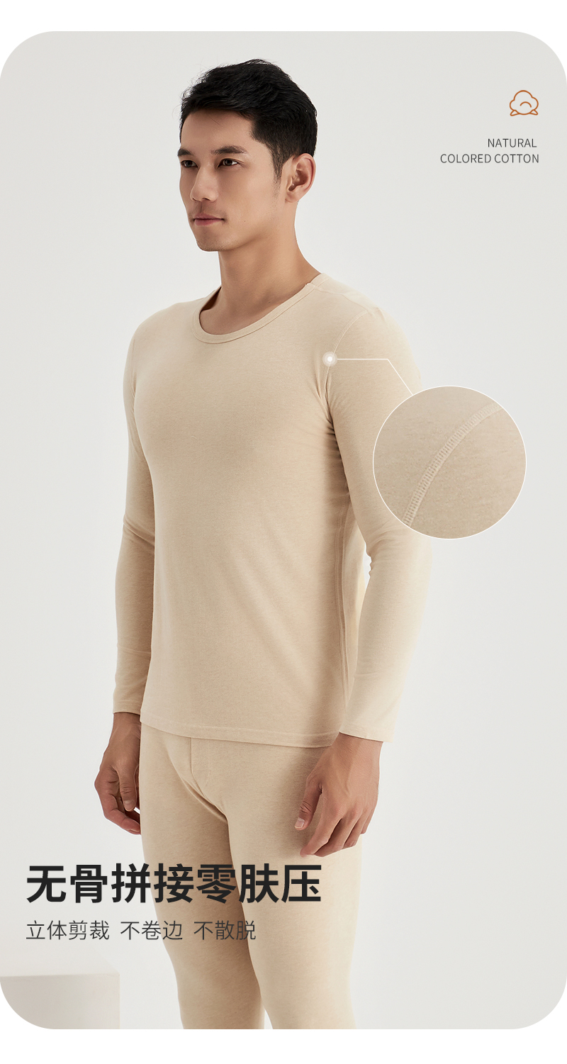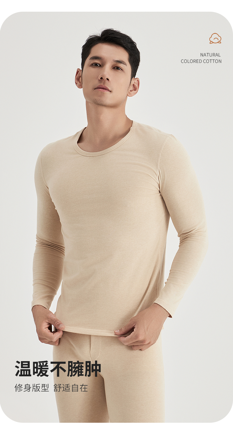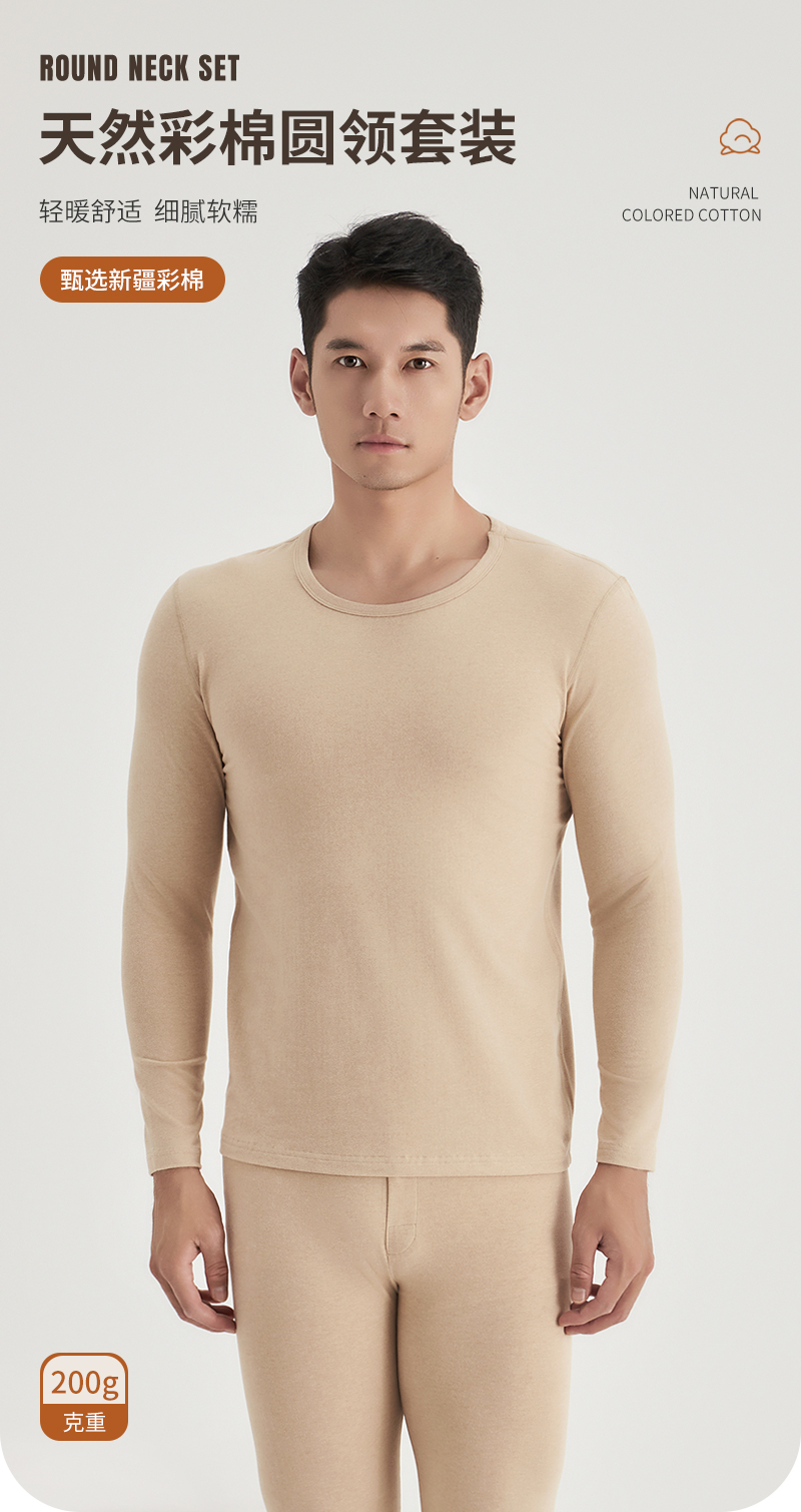 weyo秋冬新款男士200g天然彩棉圆领保暖衣套装B15301+B15402