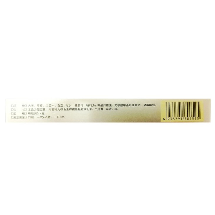 【成份】 大黄、蒺藜、功劳木、白芷、冰片、猪胆汁。辅料为:微晶纤维素、交联羧甲基纤维素钠、硬酯酸镁。