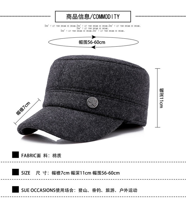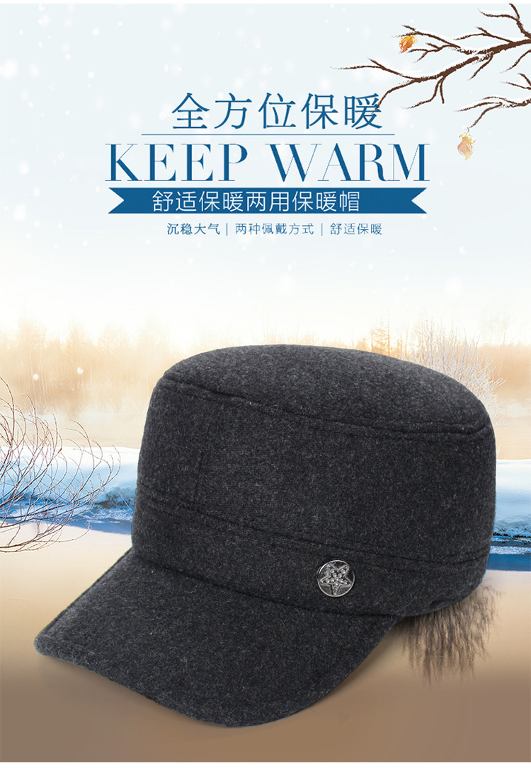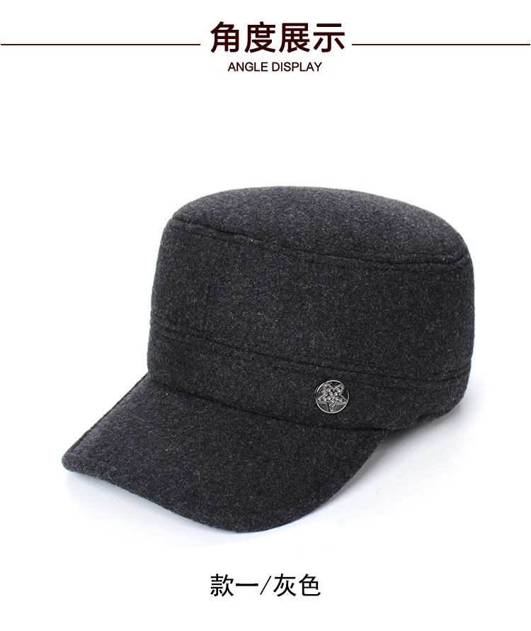 【超暖!秋冬加厚鸭舌帽】全方位保暖,防寒防冻!男士中老年户外护耳平顶帽子毛呢爸爸爷爷