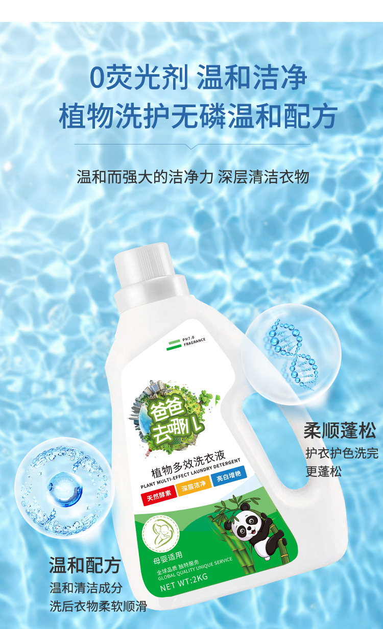 【植物萃取多效洗衣液】正品天然酵素爸爸去哪儿洗衣液,0荧光剂,温合去渍洁净,深层洁净洗衣液家用洗衣液4斤量QQ