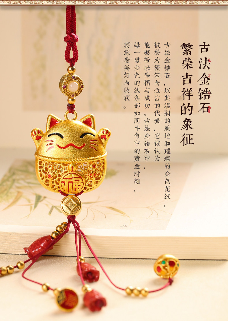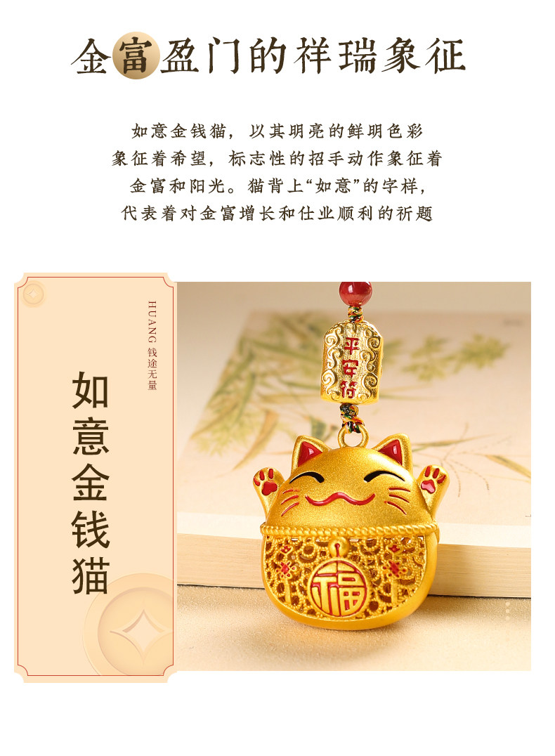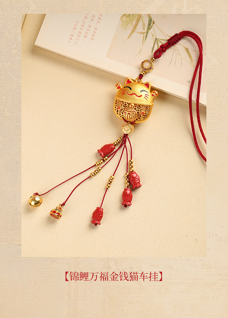 【祈愿吉品】锦鲤万福金钱猫车挂富贵如意吸金顺康汽车后视镜饰挂件