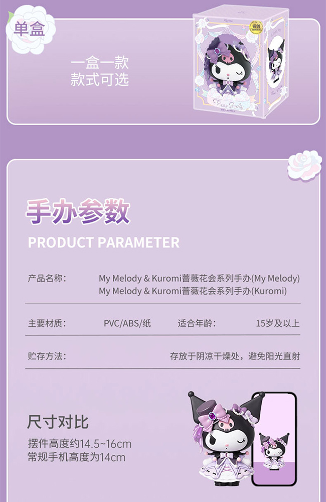名创优品 库洛米&美乐蒂 蔷薇花会系列 潮玩手办摆件