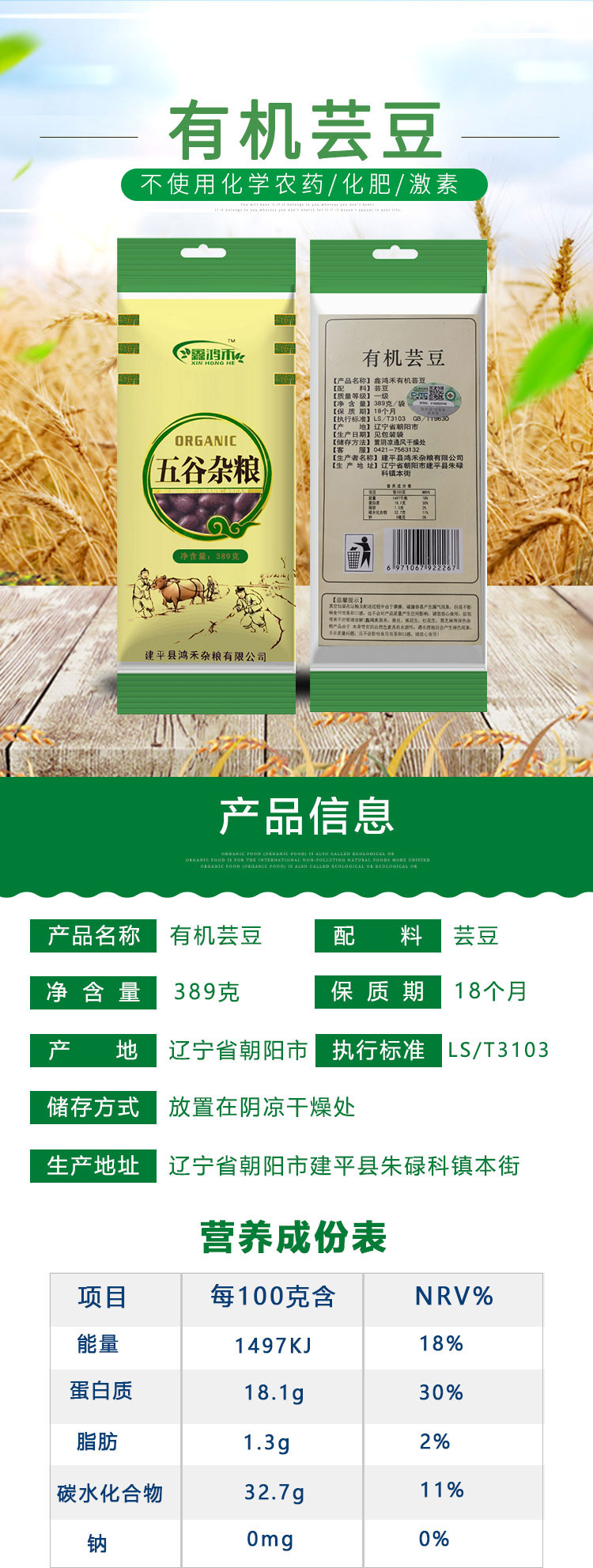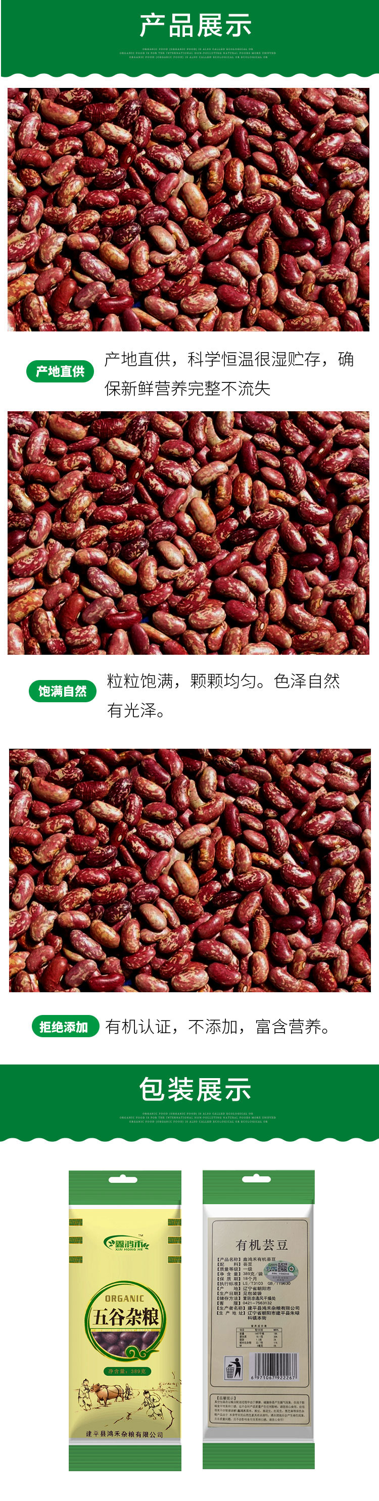 彩虹雨 有机杂粮 有机芸豆389g 满百包邮