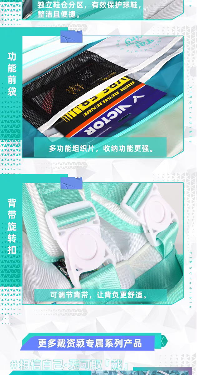 胜利威克多 戴资颖专属系列 羽毛球包 双肩背包/六支装双肩背拍包/长型后背包 BR5033TTY/BR5233TTY//BR5833TTY