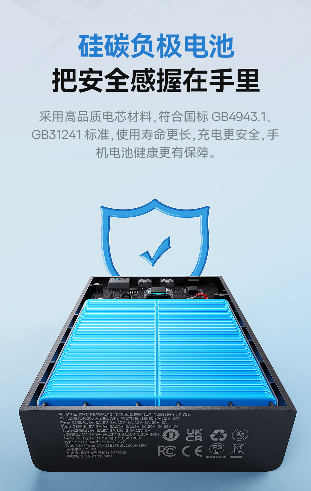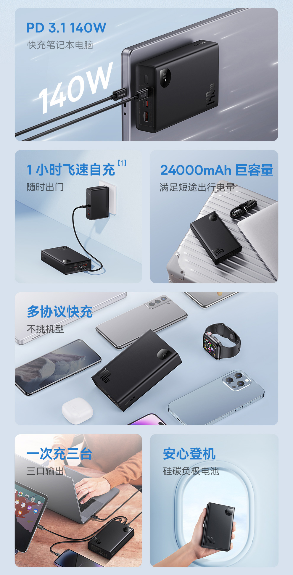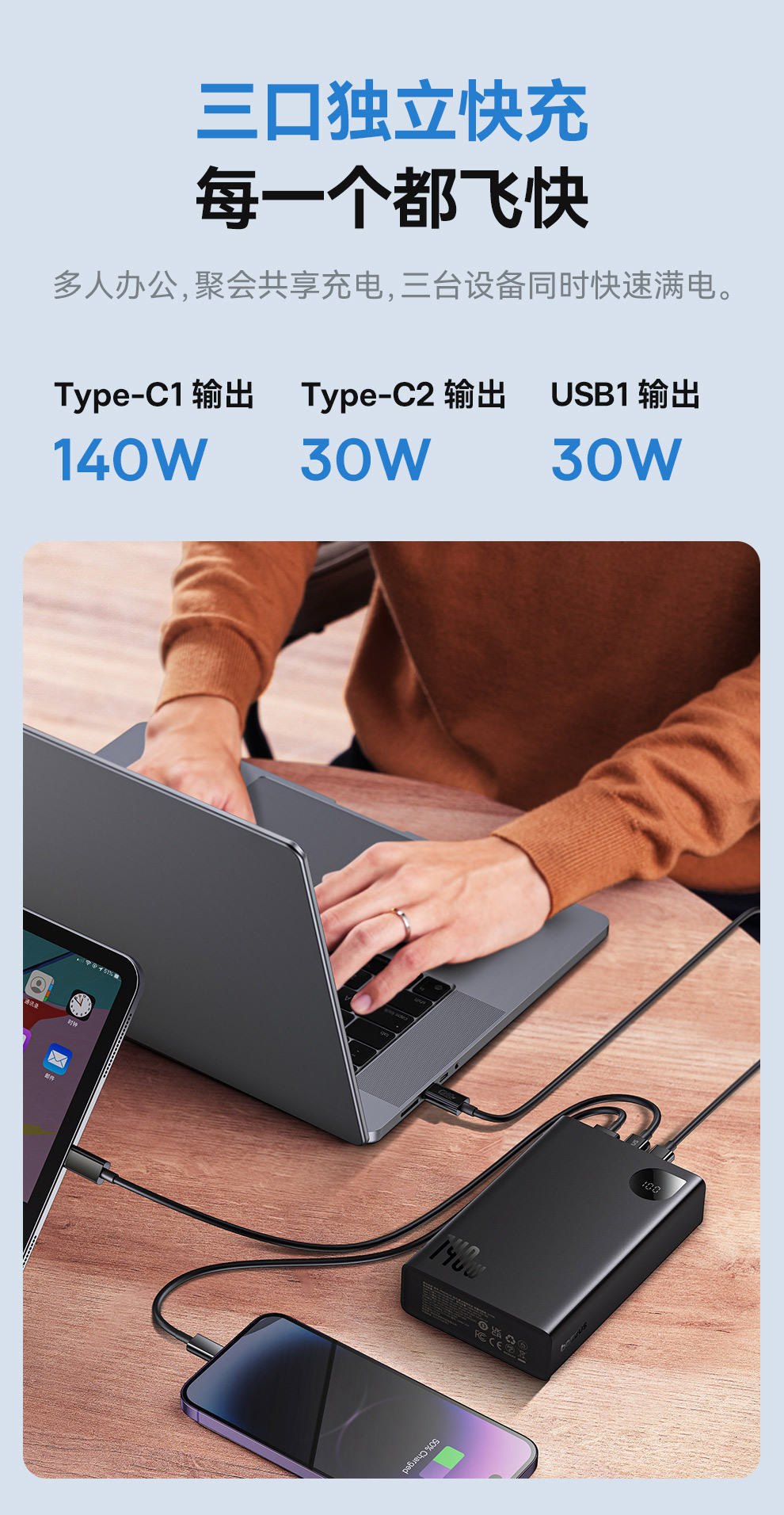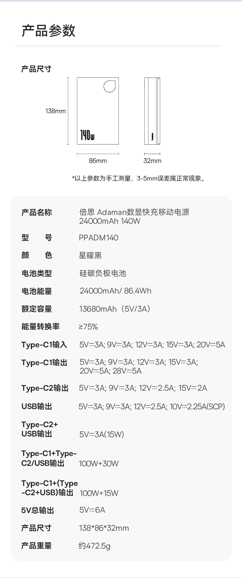 倍思 Adaman 数显快充移动电源 24000mAh 140W