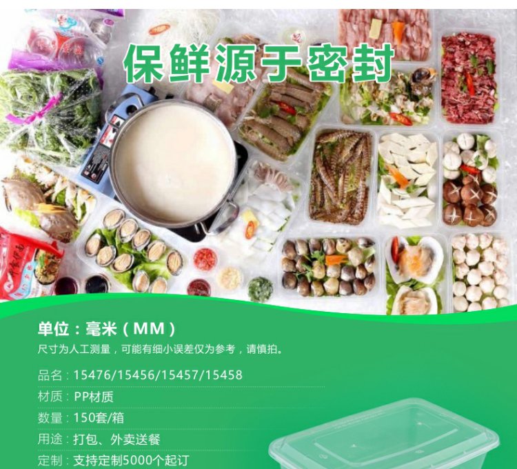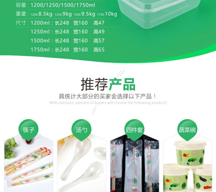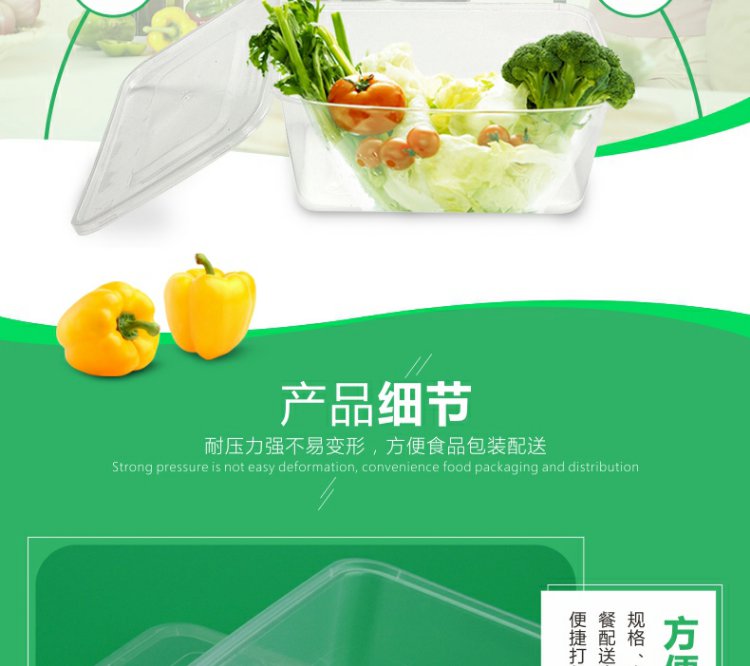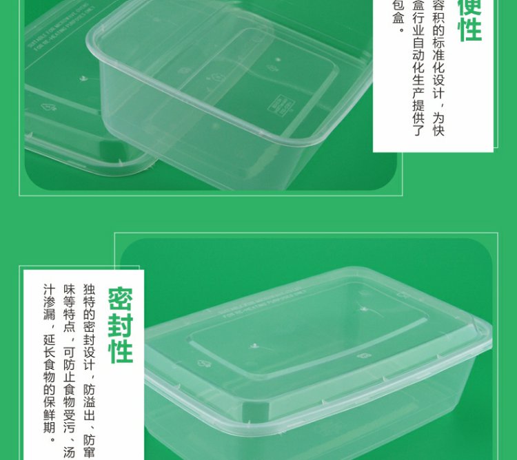 喇叭花1250ml1500ml1750ml方形凸盖一次性餐盒外卖打包盒150套
