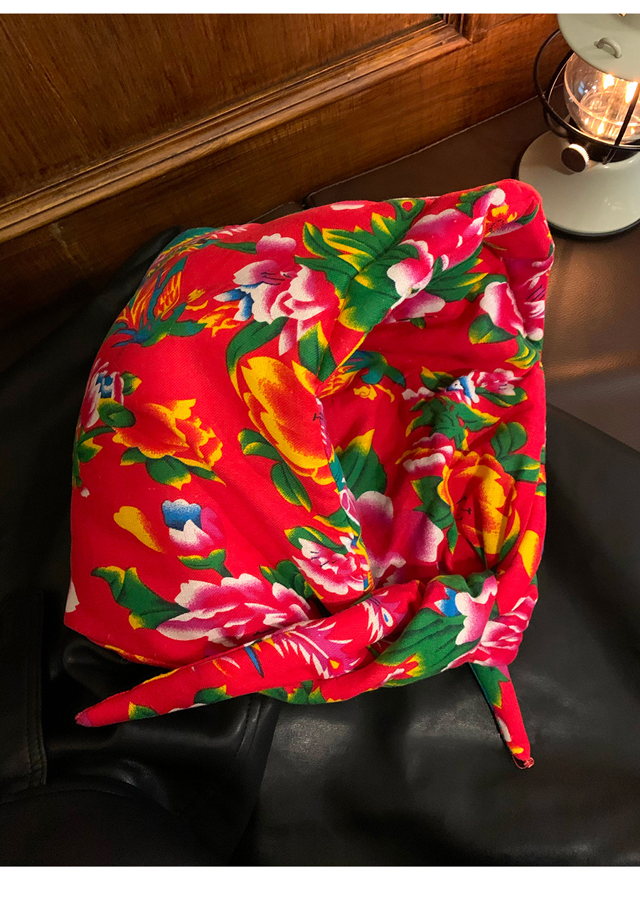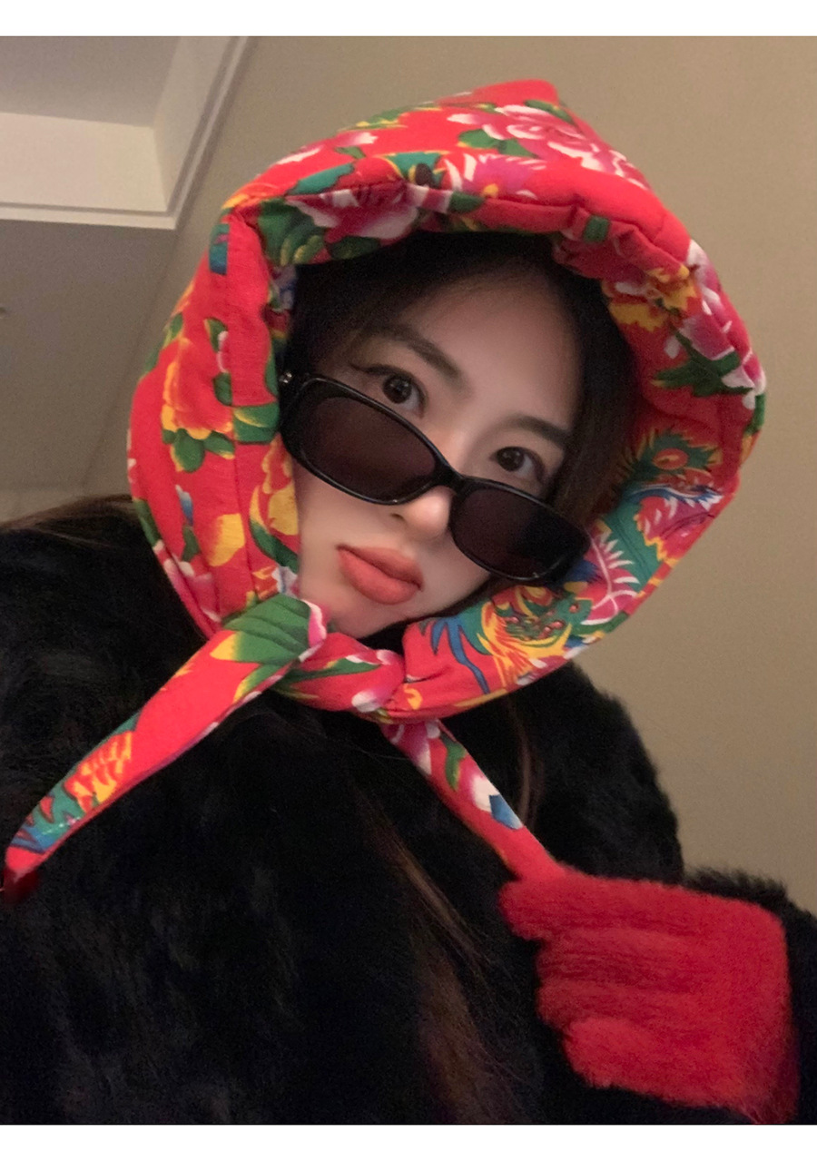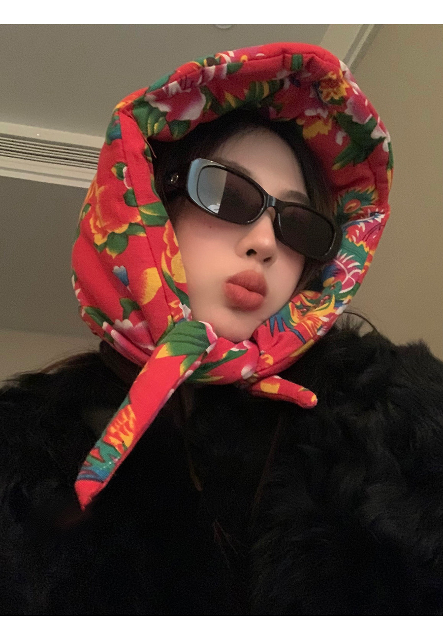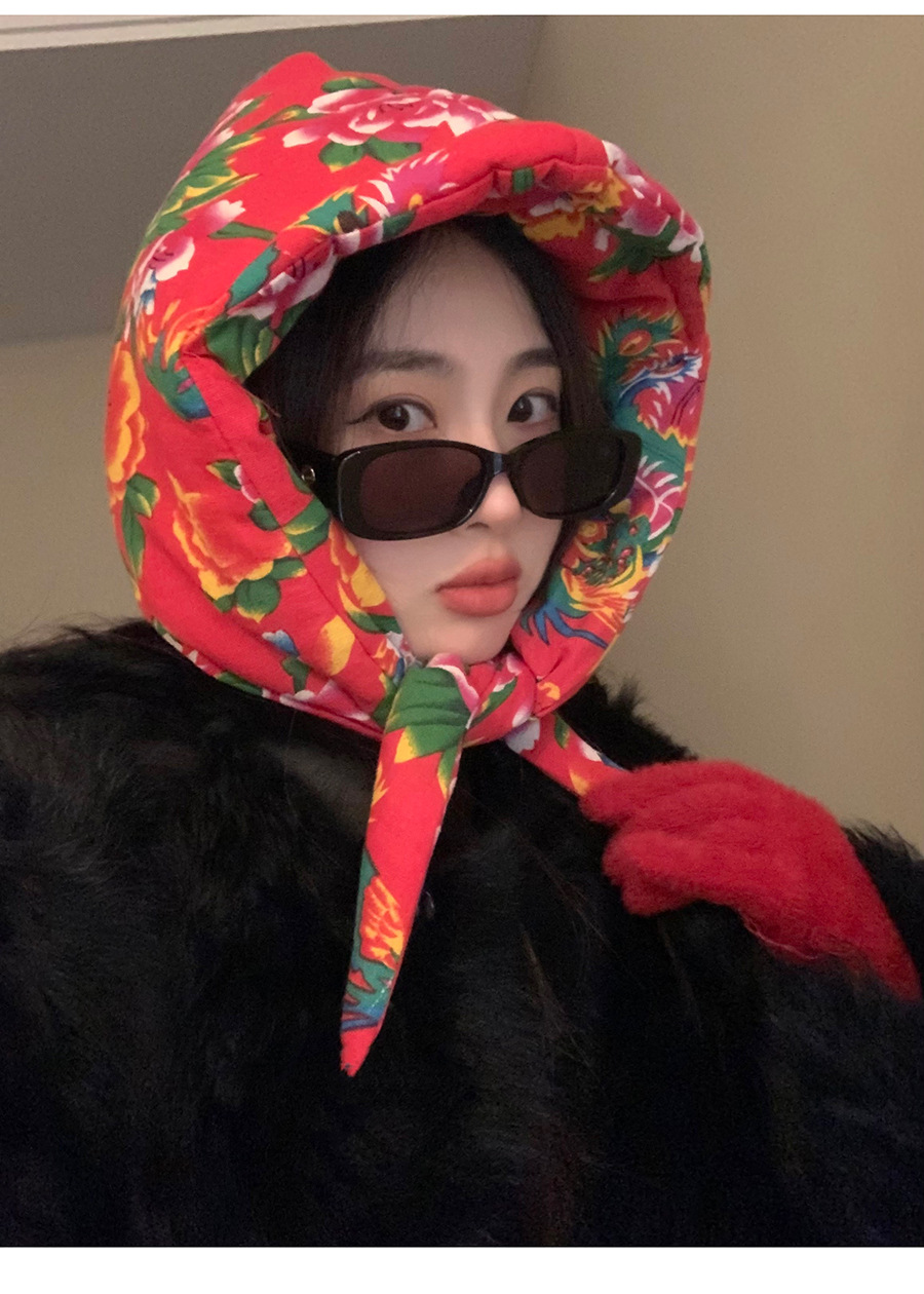 东北时尚夹棉大花布头巾帽