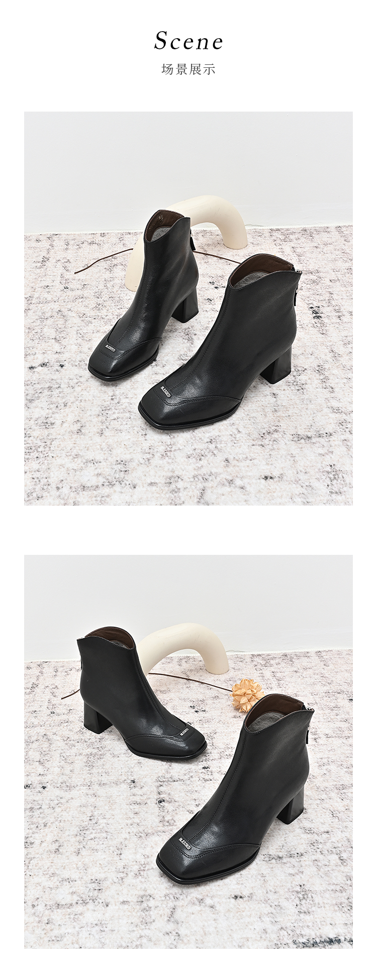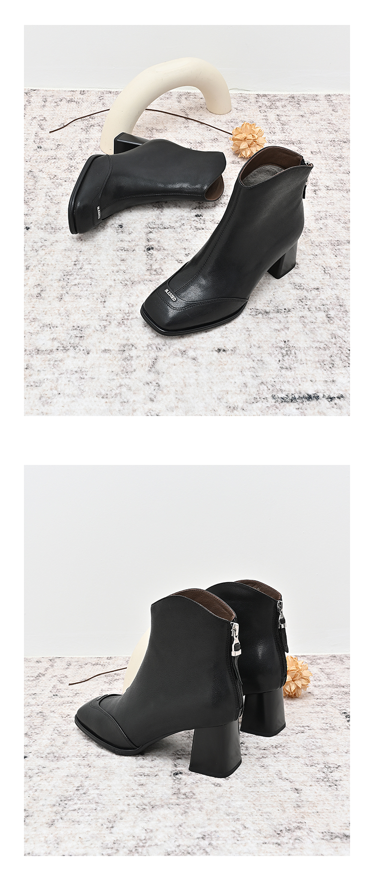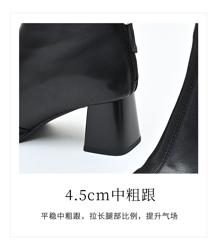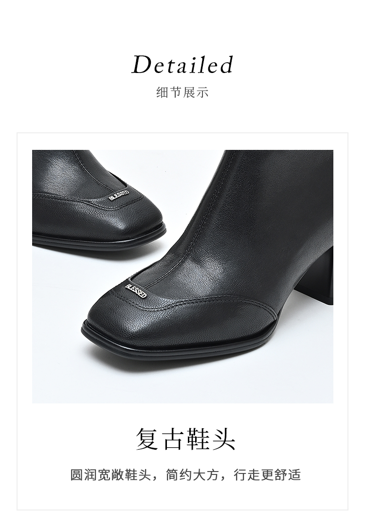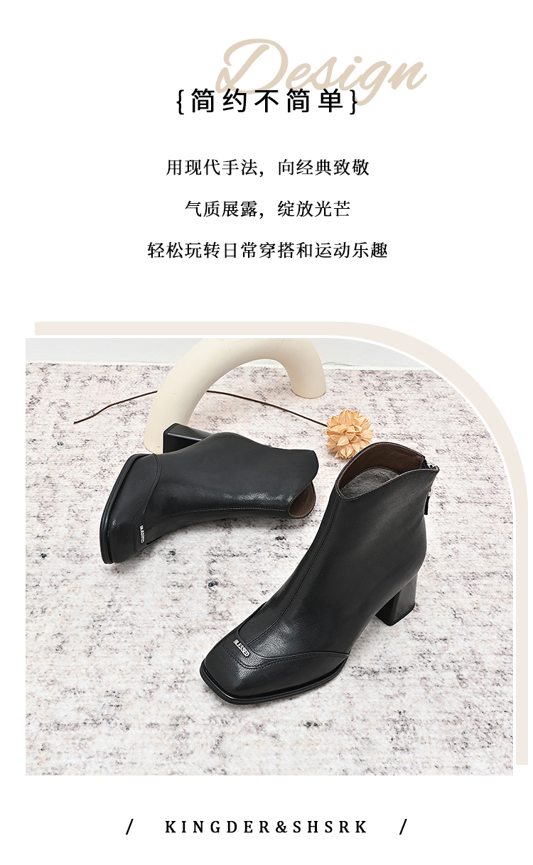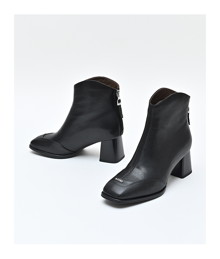 经典鲨2024年冬季新款时尚方头后拉链加绒中粗跟气质短靴女KW117-D58171