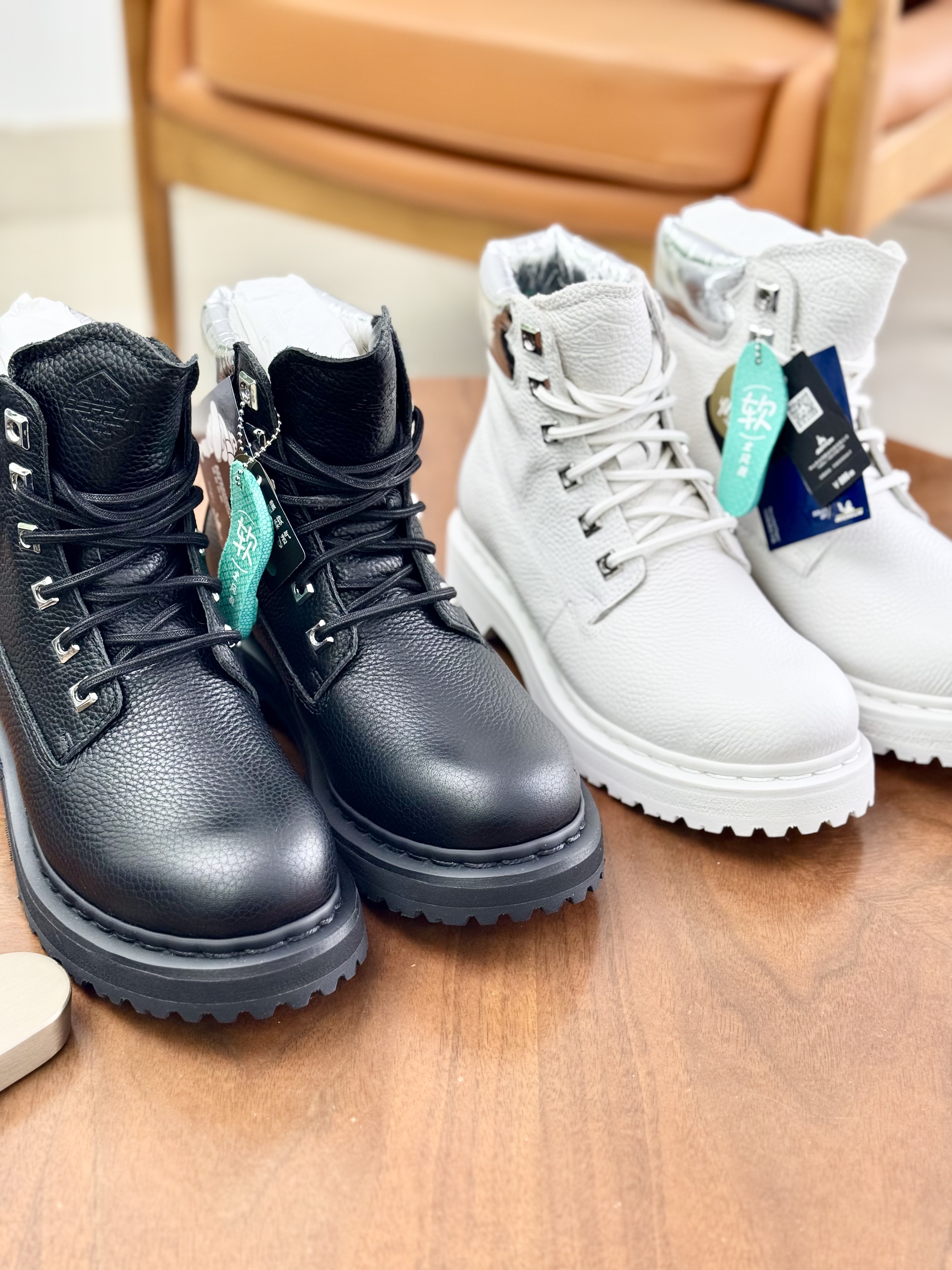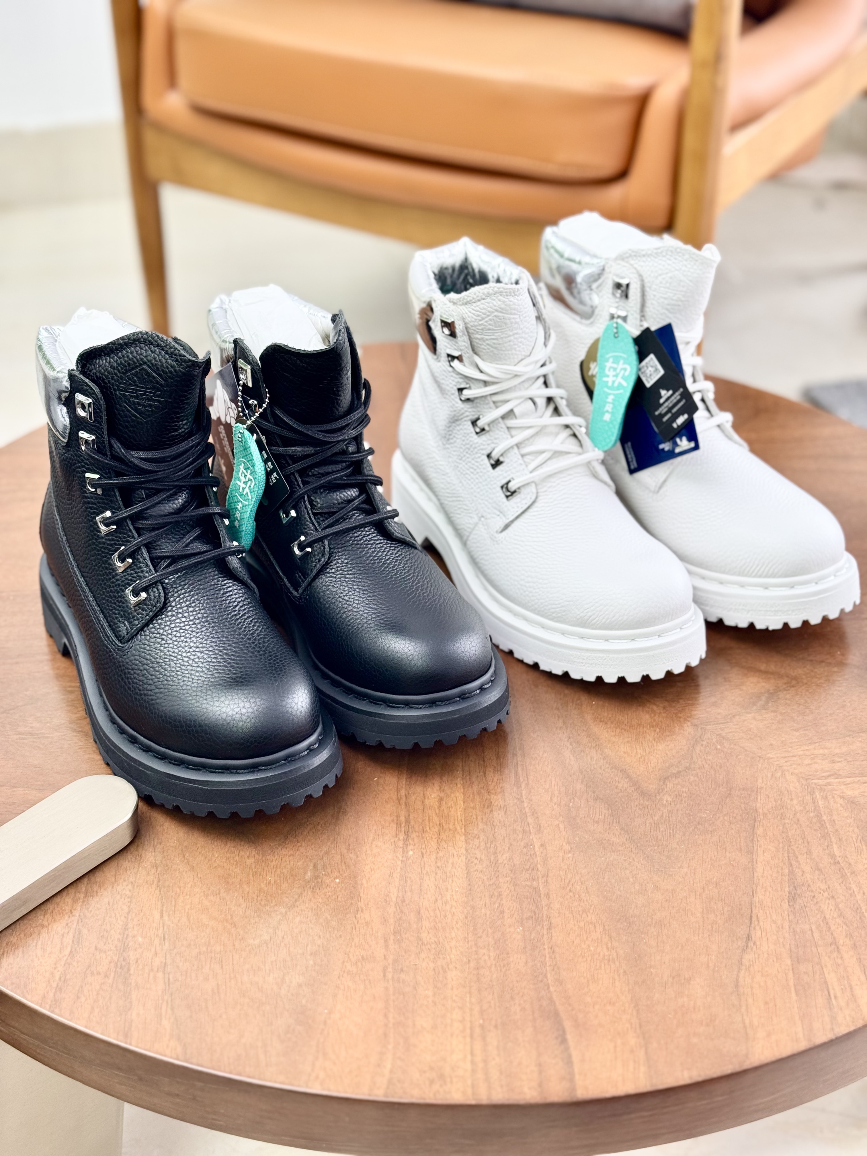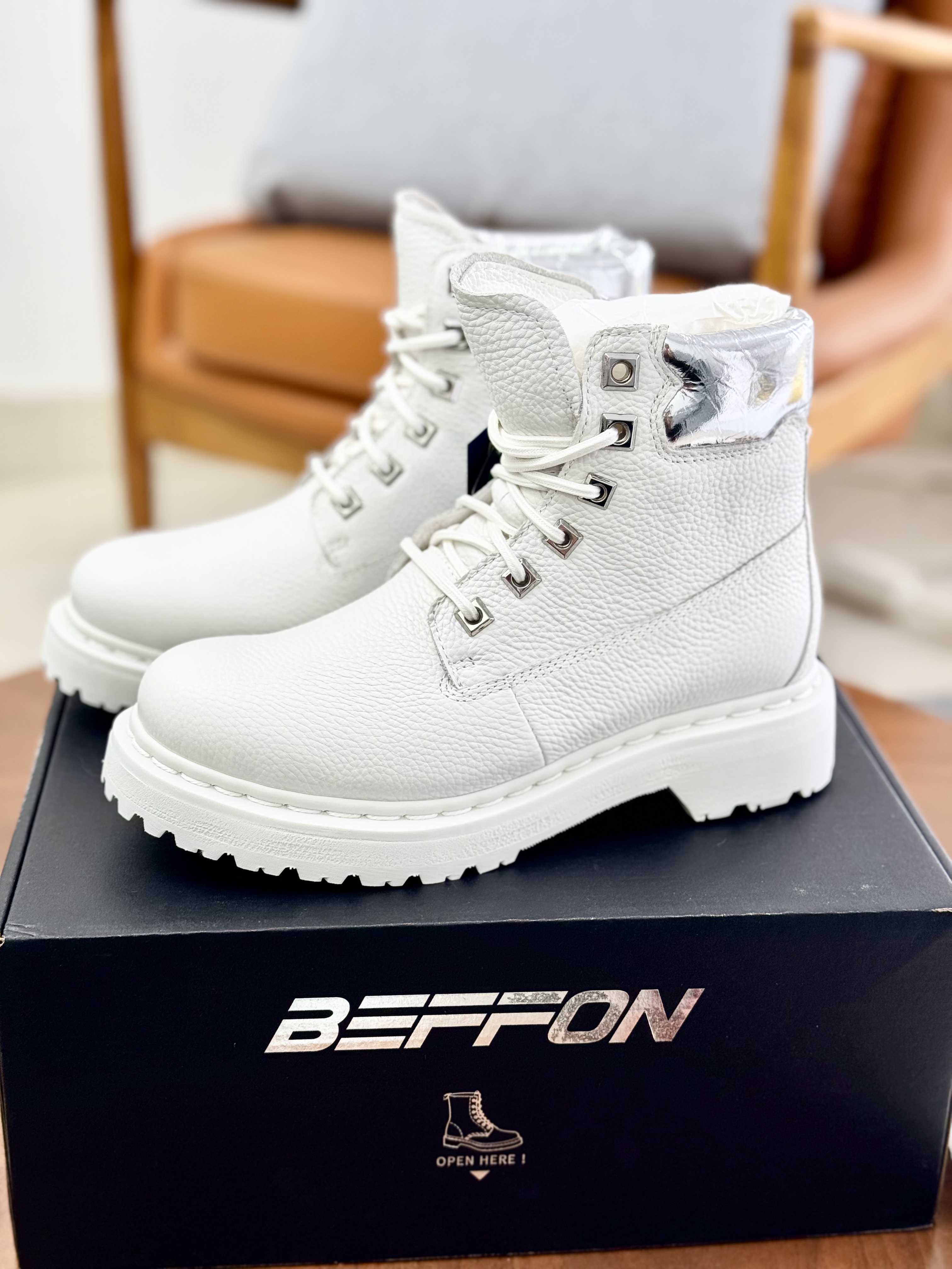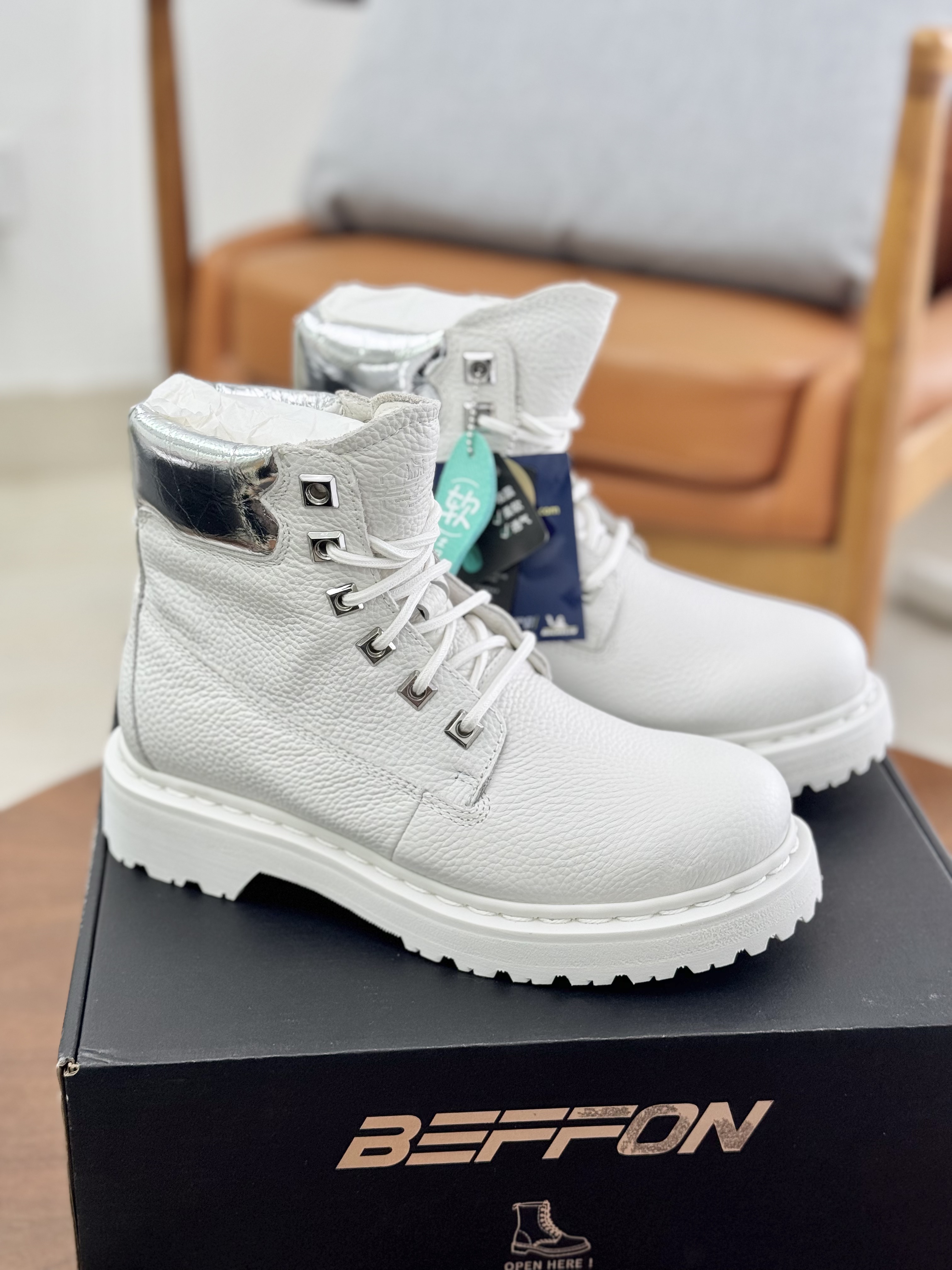 BEFFON冰川白/曜石黑机能马丁靴,
