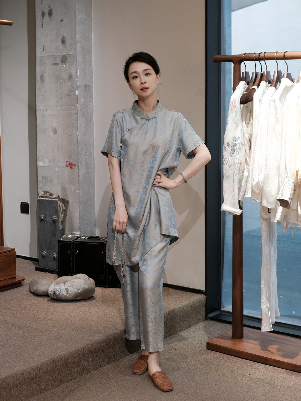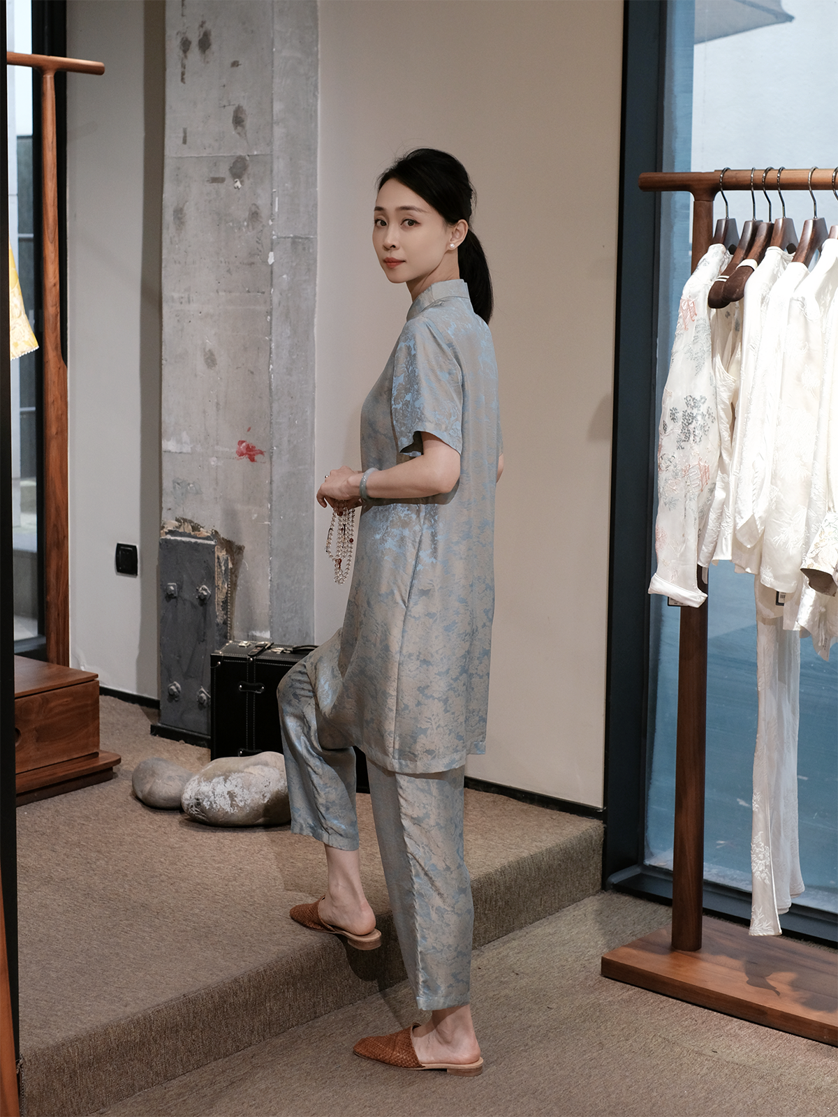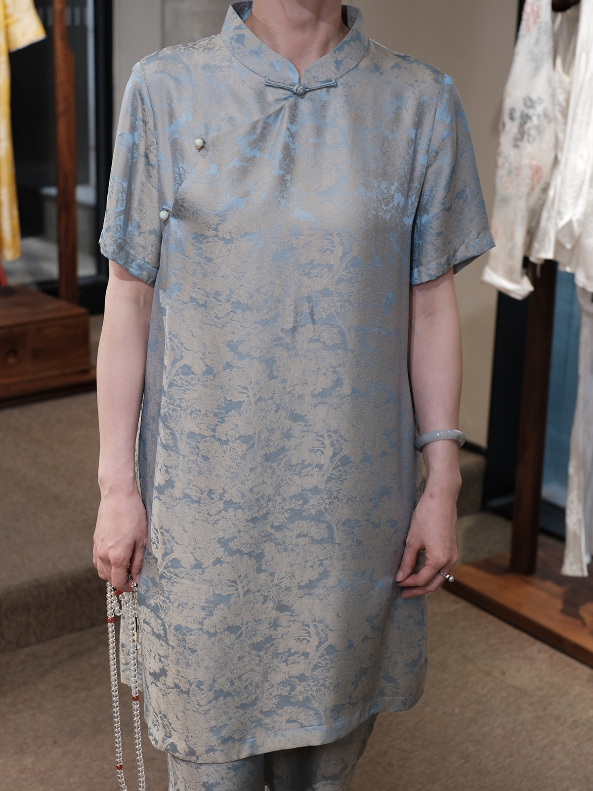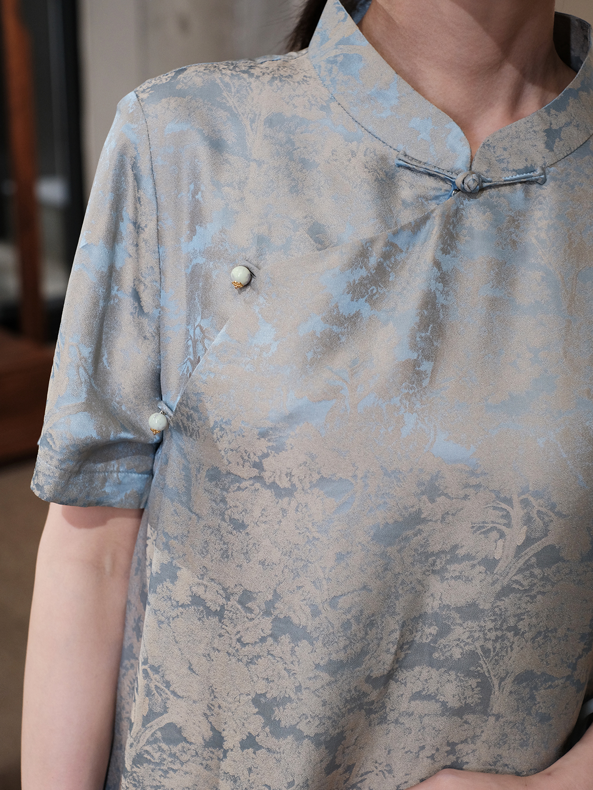 盛唐牡丹| 珍珠白真丝竹子纹偏襟上衣