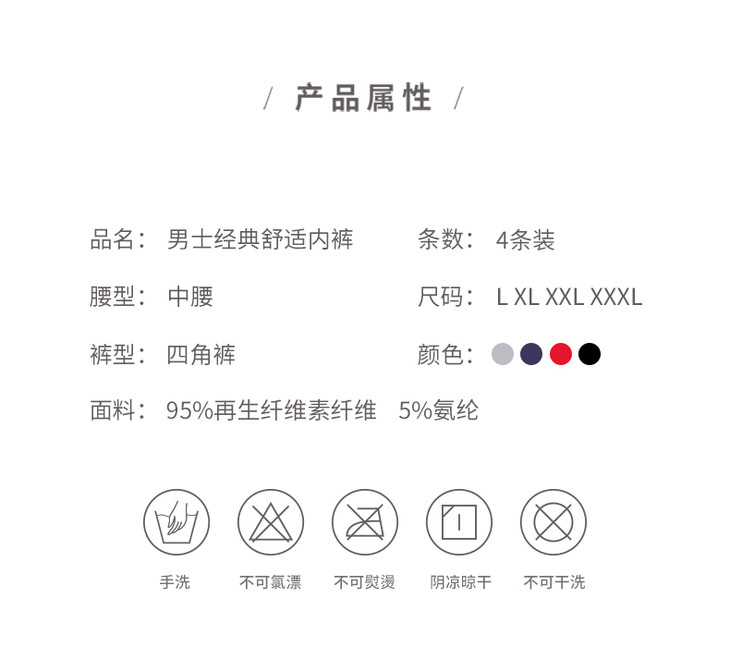 雅黛丽内裤男简约青年四角短裤平角裤4条装内裤DYT96015