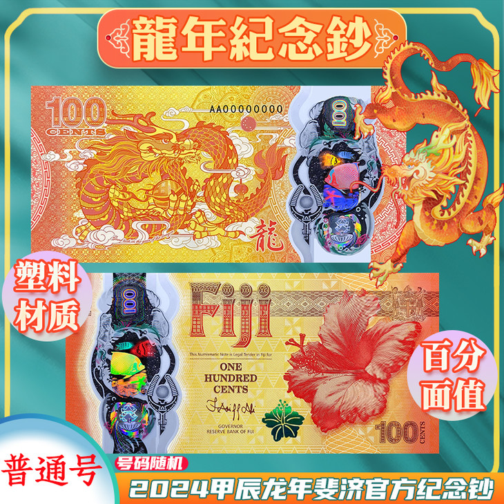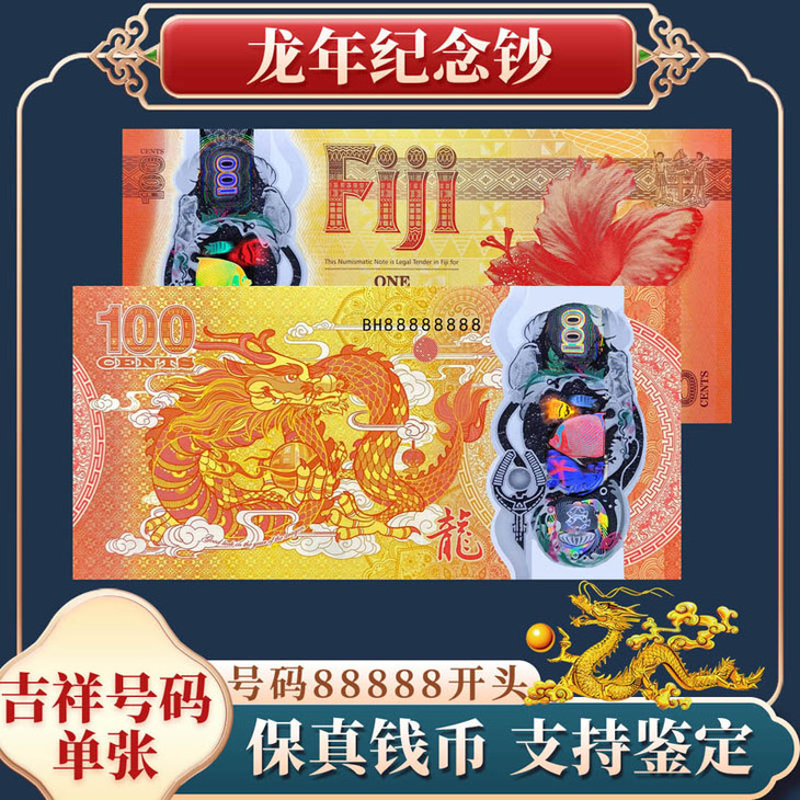【吉祥号88888开头】2024斐济龙年塑料纪念钞!全新100分!