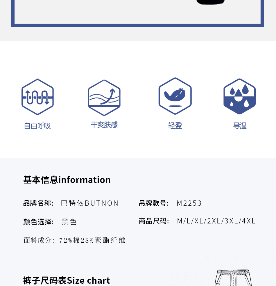 巴特侬butnon男士运动长裤针织棉春秋款M2253