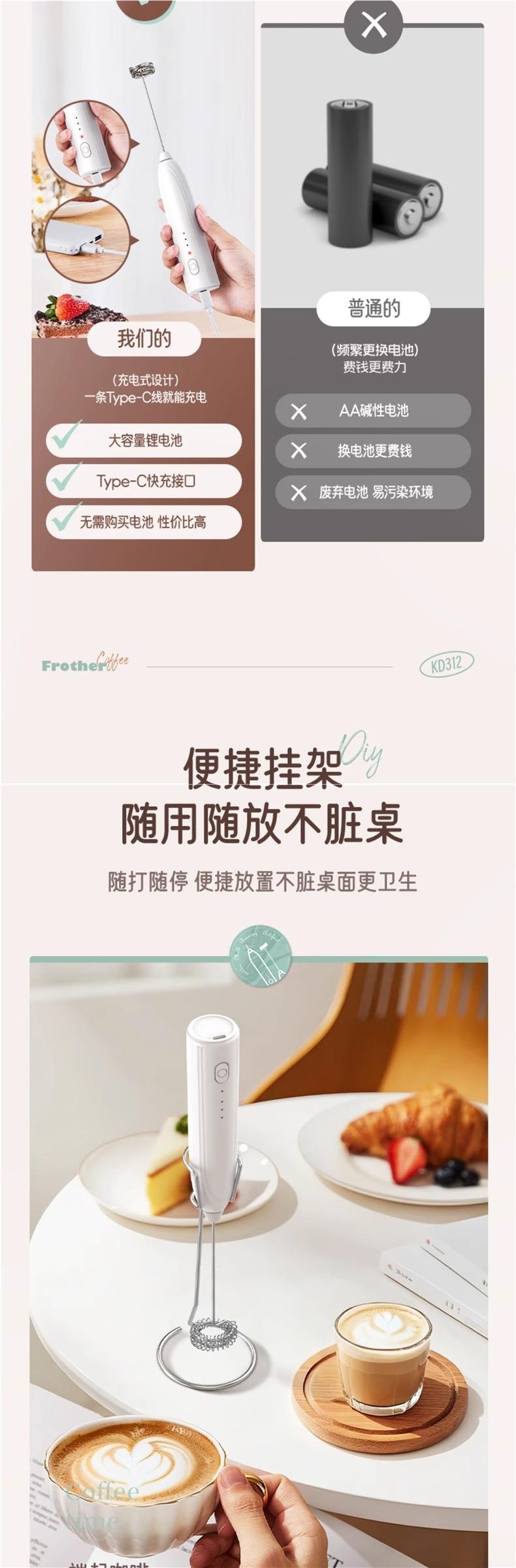 荣事达咖啡打泡器 牛奶搅拌器 电动搅拌棒家用奶泡打发器打蛋器手持