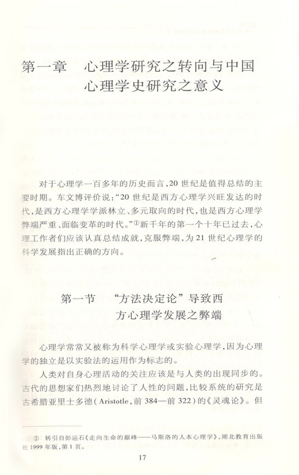 导言一、文化与自我二、中西方文化与中国人的自我三、本研究的缘起与目的第一章心理学研究之转向与中国心理学史研究之意义第一节 “方法决定论”导致西方心理学发展之弊端第二节 “对象决定论”决定现代心理学发展之方向第三节 “对象决定论”揭示中国心理学史研究内容第二章中西方心理学体系问题与中国心理学史研究之思路第一节 中西方心理学体系的结合问题一、问题:从中国心理学史教材的编写说起二、科学性:中西方心理学体系的一致追求三、科学性原则:中西方心理学结合的保证第二节 中西方心理学体系结合的方法一、外在逻辑原则:教材的解决方式二、科学性原则:潘菽的解决方式三、困境与改革:“尊重人文,强调体系”第三节 中西方心理学体系结合的对象一、异质说:中西方心理学体系的矛盾论二、求同说:中西方心理学体系的结合观三、精神性:中西方心理学共同的新主题第三章理学精神自我思想之外在逻辑(一):弊端与超越第一节 心脑不分:西方主流心理学弊端之一一、心理学研究对象或主题的重大转换二、“脑”与“心”:心理学研究对象之思考三、从超个人心理学到理学心理学第二节 人兽不分:西方主流心理学弊端之二一、“人—兽”类比:心理学研究的传统范式二、从“人—兽”类比到“人—机”类比:传统的微调三、“人—兽”之别或精神心理:心理学研究的新范式第三节 心生不分:西方主流心理学弊端之三一、人性与心理机能二、心理机能产生的观点三、意识或精神心理产生的观点第四章理学精神自我思想之外在逻辑(二):心理学与自我第一节 自我之心理学研究一、心理学自我研究之先河二、精神分析心理学与自我三、社会心理学与自我四、人本主义心理学与自我五、认知心理学与自我六、心理人类学与自我七、后现代主义心理学与自我第二节 自我之精神性演化一、自我发展的“ego”阶段二、自我发展的“self'’阶段三、自我发展的“super—ego”阶段第三节 自我之双二元结构一、自我的人性层次二、自我的意识维度第五章理学精神自我思想之内在逻辑(一):思想背景第一节 天理道心一、“天理”与“人事”二、“天理”与“道心”三、“道心”与“精神心理”第二节 万物之灵一、人贵论:理学精神心理学之思想源头二、道德说:理学精神心理学之内在规定第三节 人性之善一、西方心理学的人性观二、中国文化的人性解读三、天命之性:理学精神心理学之逻辑起点第六章理学精神自我思想之内在逻辑(二):孔孟观点第一节 孔子之君子自我观一、君子自我的心理结构及本质二、君子自我的核心与表现第二节 孟子之圣人自我观一、成圣人人可为二、圣人自我的结构三、圣人自我的核心与表现第三节 孔孟之自我修养观一、个体自身努力二、外部环境熏陶第七章理学精神自我之心理功能(一):伦理认知第一节 物理认知与伦理认知一、中西方认知特点二、墨子之物理认知观第二节 伦理认知之先秦观点一、孔子之伦理认知思想二、孟子之伦理认知思想第三节 理学之伦理认知思想一、张载之伦理认知思想二、程朱之伦理认知思想第八章理学精神自我之心理功能(二):意向过程第一节 圣人无情:不以物喜不以己悲一、情绪与情感二、常情与私情三、无情与有情第二节 志公意私:志者心之所向也一、心统性情:精神之意志结构二、以意驱志:心理学之意志理论三、以志御意:理学之意志理论第九章理学精神自我之基本理论:学以成圣第一节 内在超越论第二节 圣人可学论一、人人皆可为尧舜二、何为圣人?第三节 圣人与君子第十章理学精神自我之修炼实践:内外一体第一节 认知加工路径:格物与致知第二节 意识调节 技术:主静与主敬第三节 观察学习模式:学颜子与观气象结语一、理学之文化价值二、理学之“人性论”错误三、理学之“情欲论”错误四、理学之心理学意义五、理学精神自我思想之弊端后记