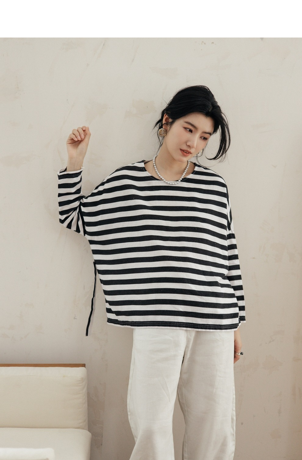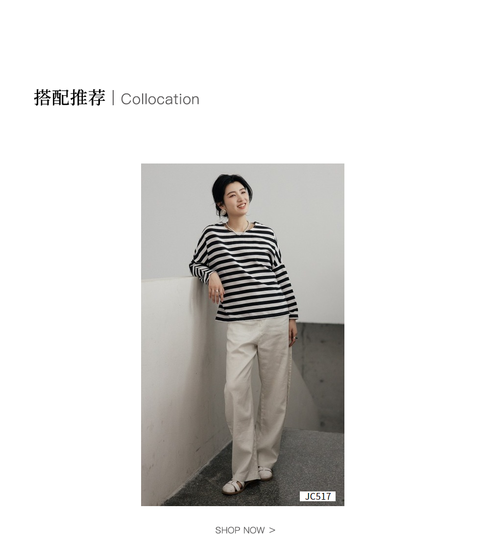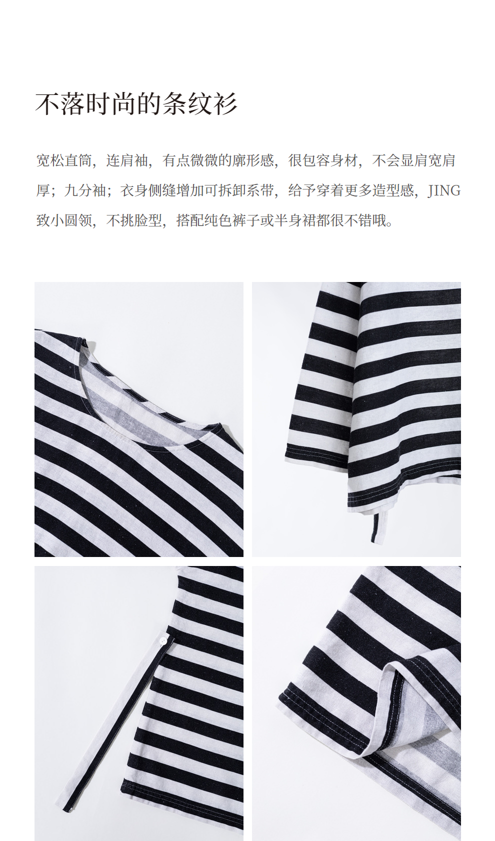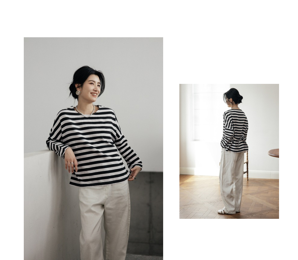 绽放旅行女装488朵【黑白灰系列】黑白条纹宽松落肩九分袖小衫