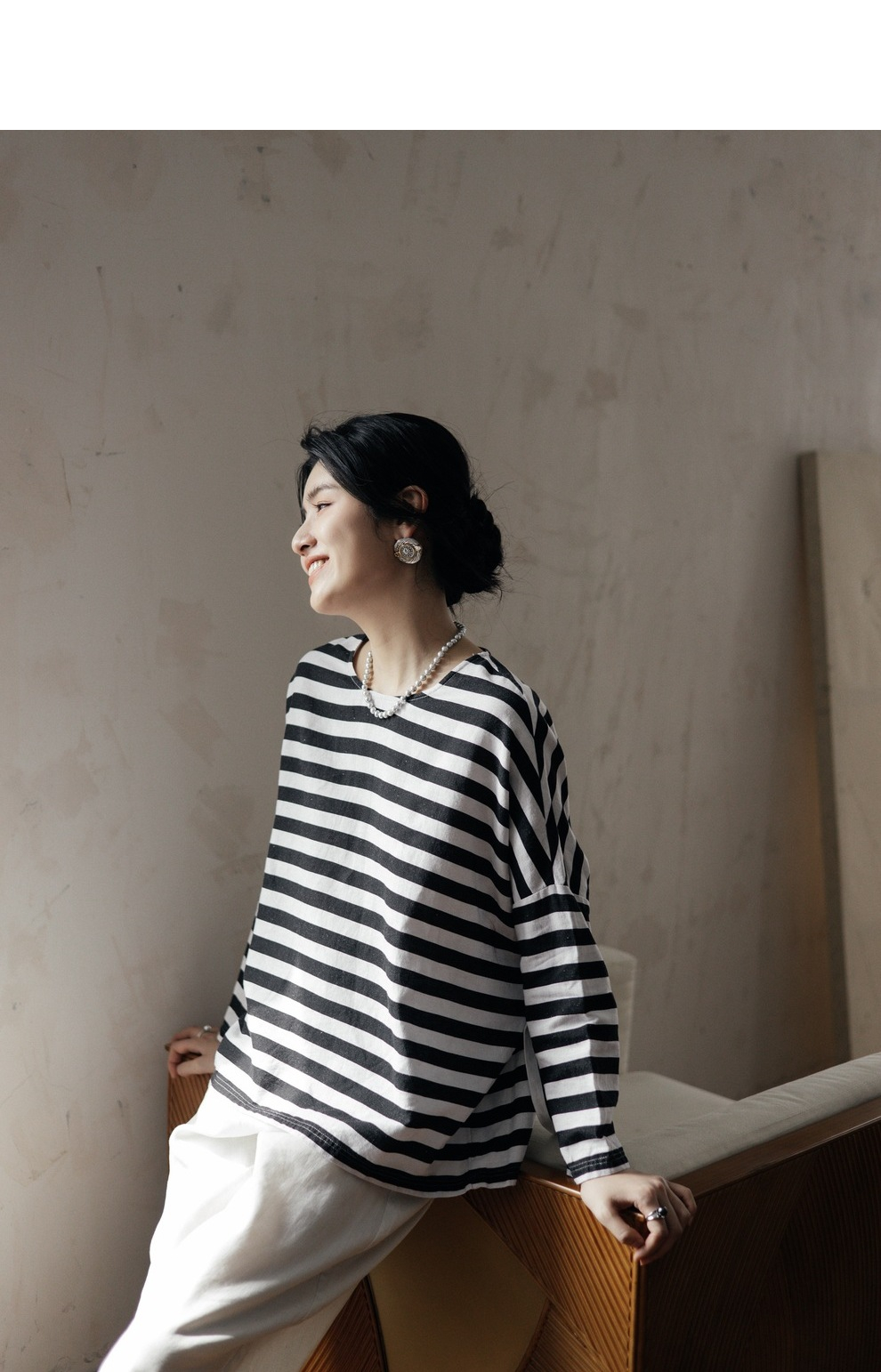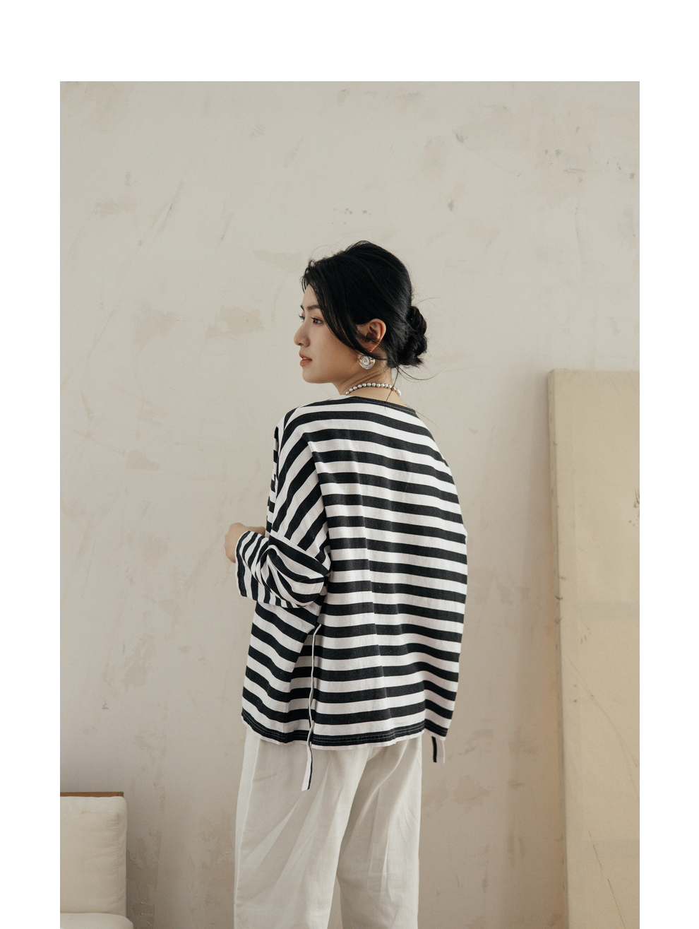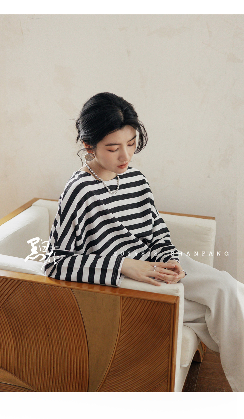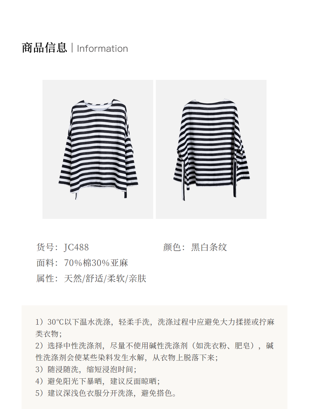 绽放旅行女装488朵【黑白灰系列】黑白条纹宽松落肩九分袖小衫