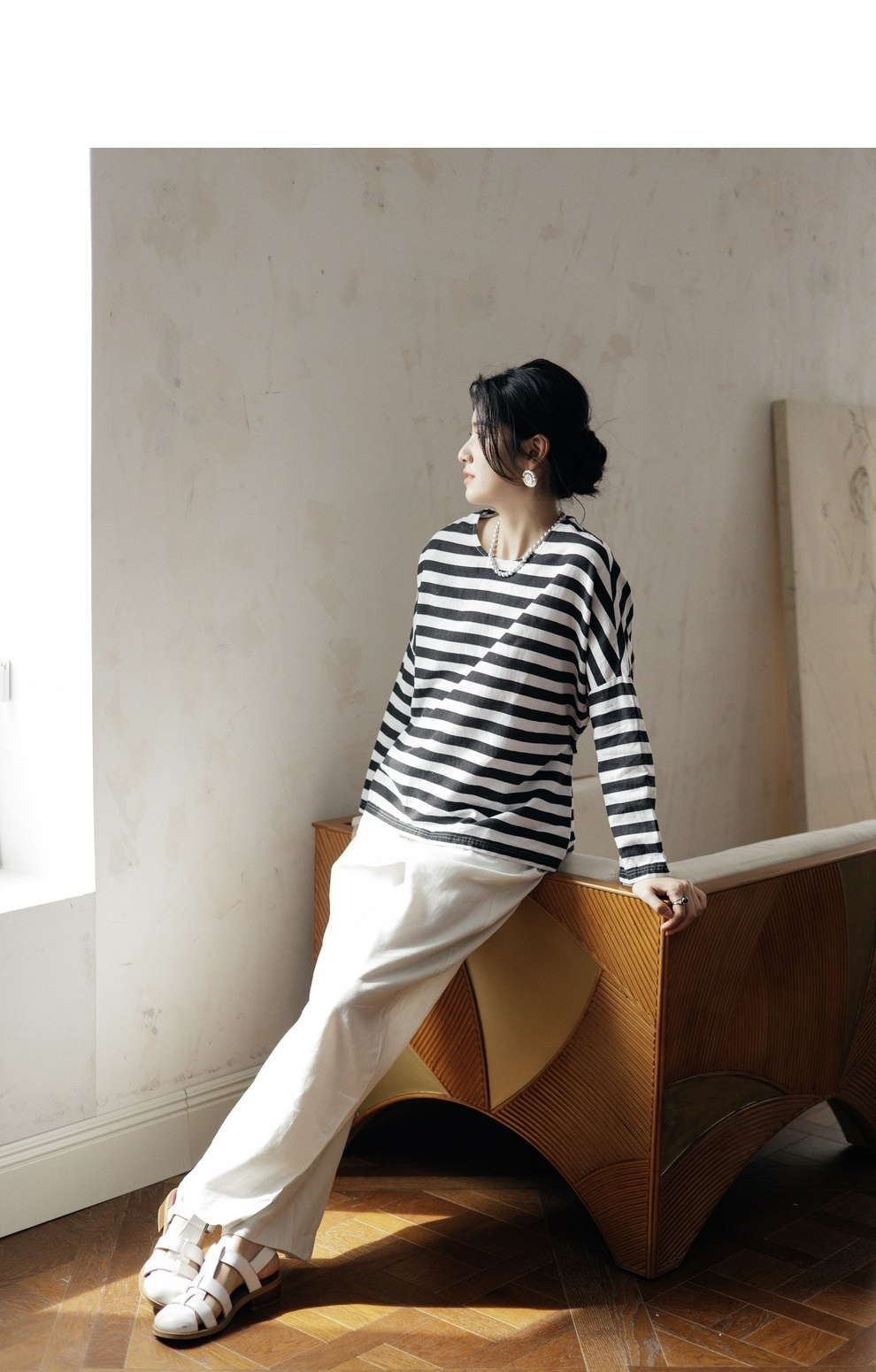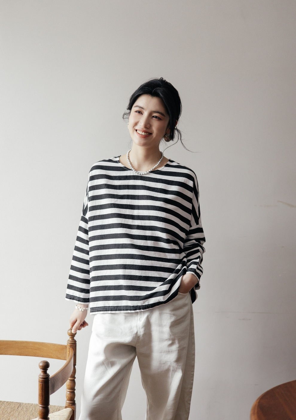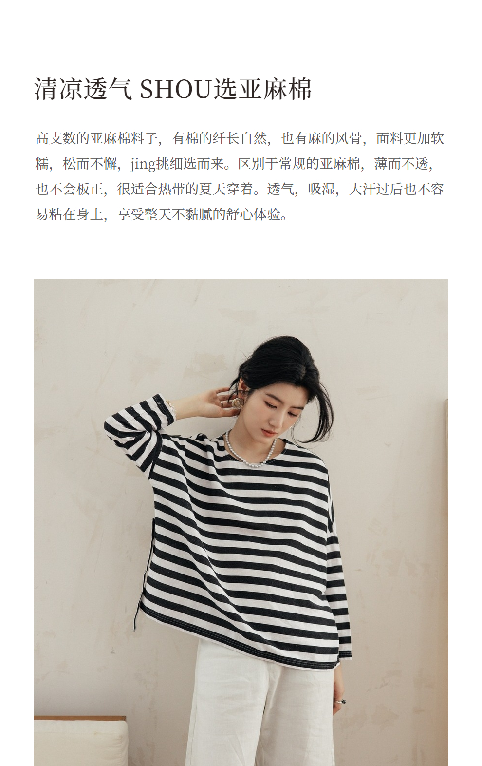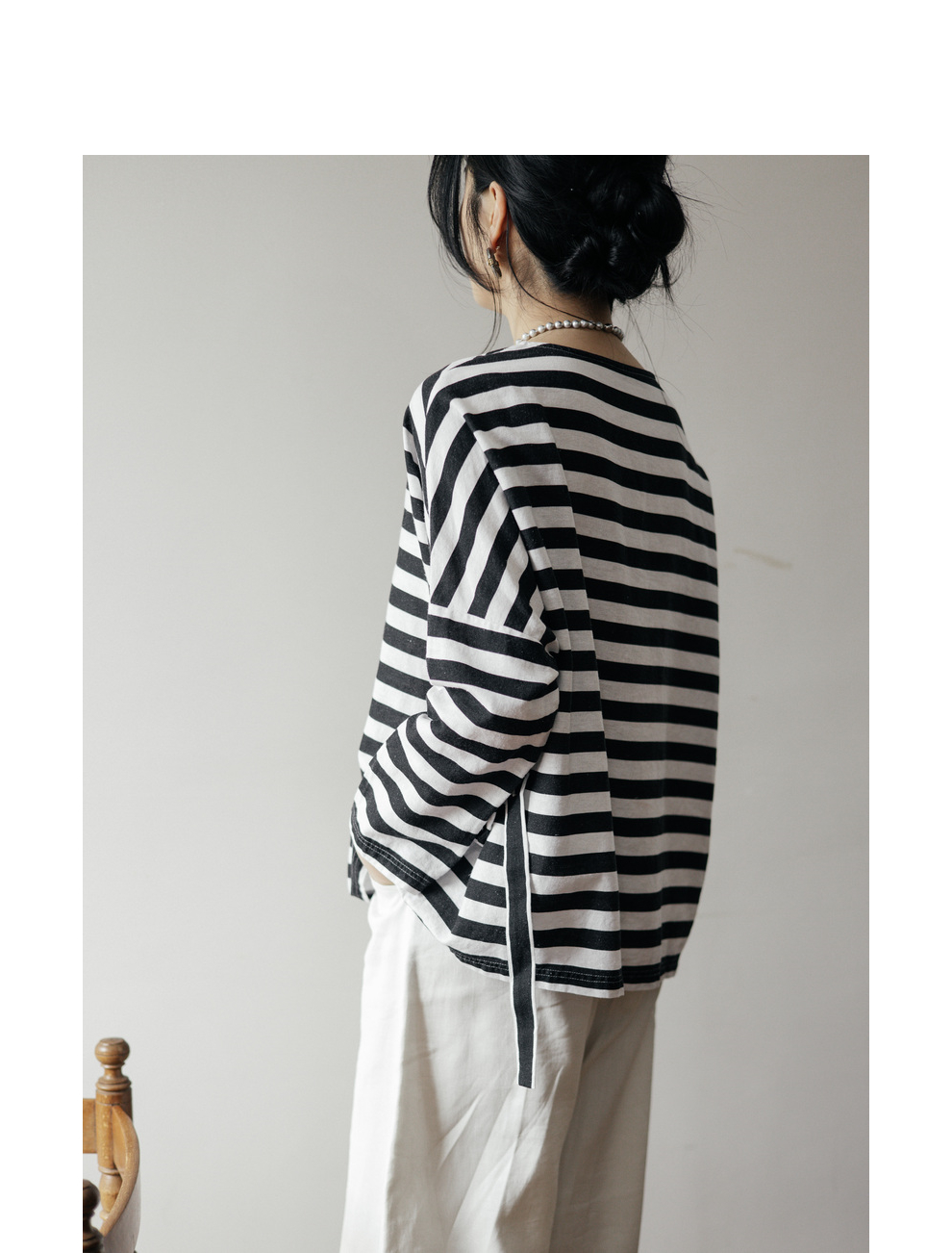 绽放旅行女装488朵【黑白灰系列】黑白条纹宽松落肩九分袖小衫