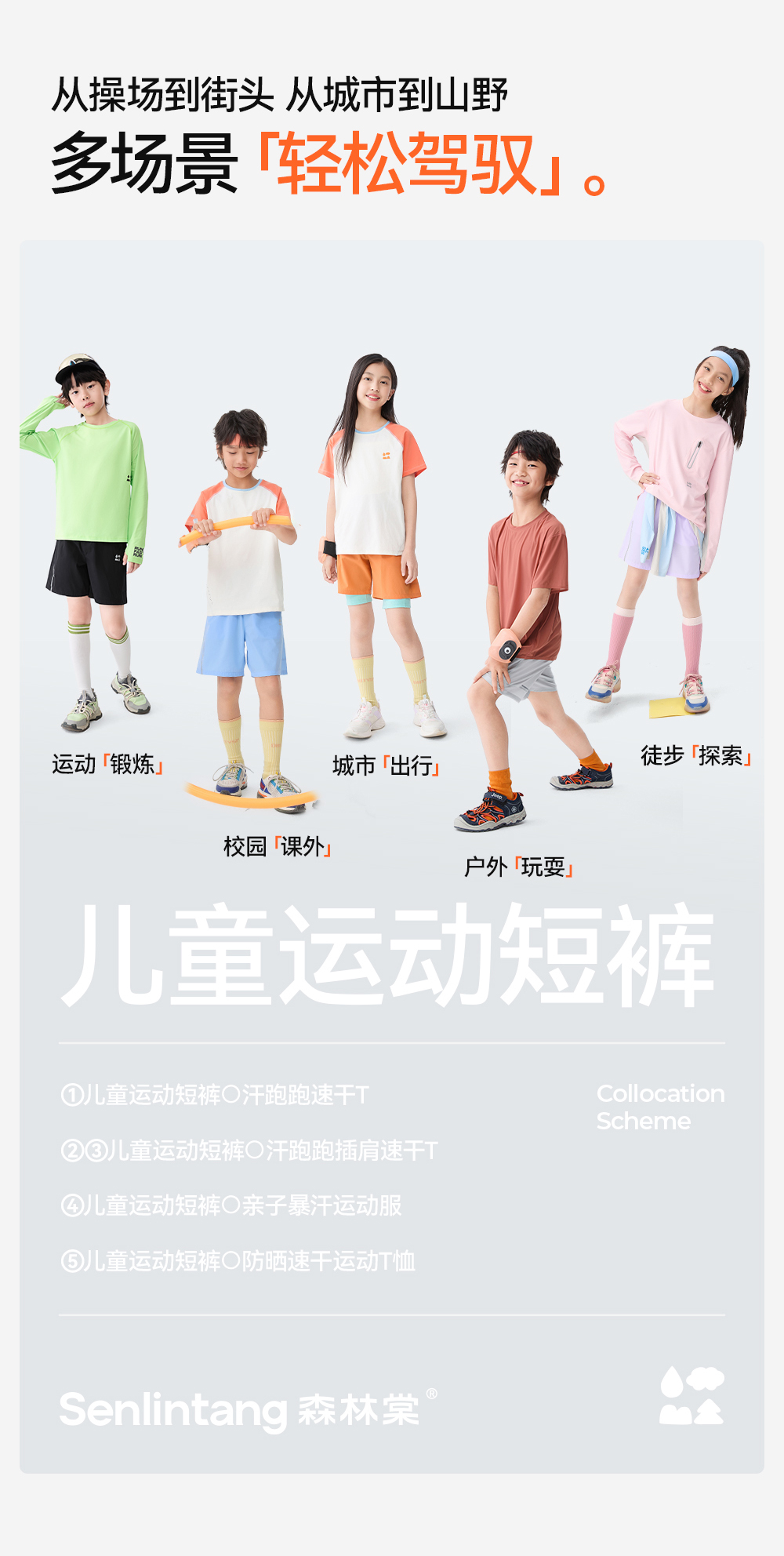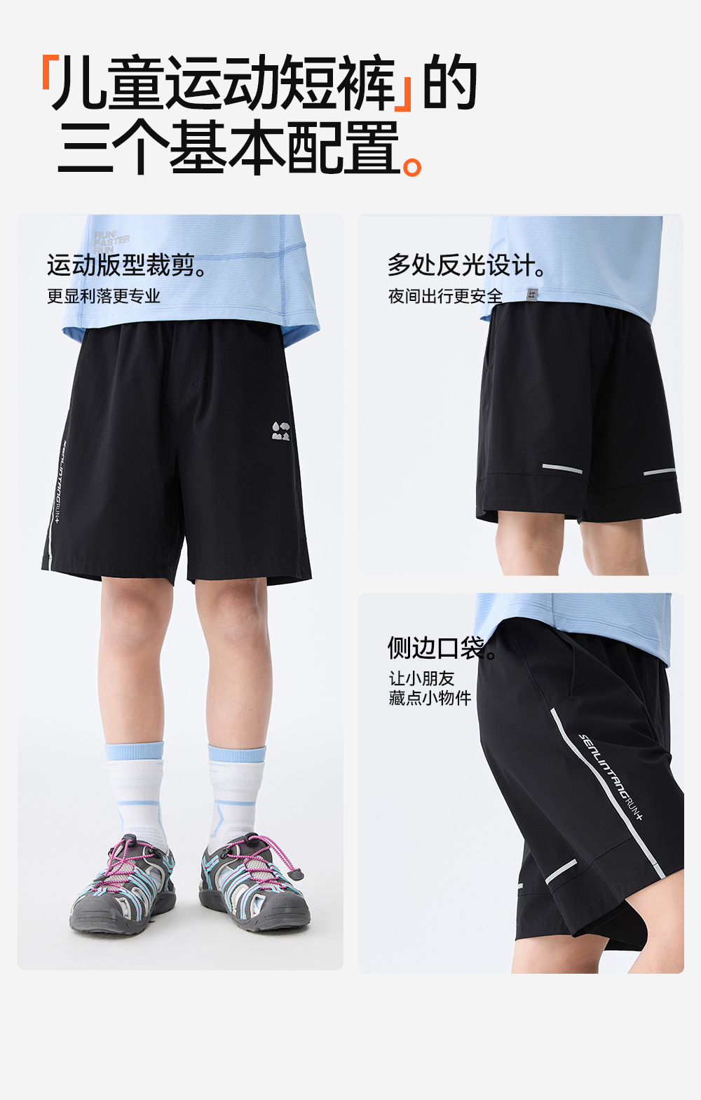 [屁侠推荐]儿童运动短裤森林棠25夏款儿童四面弹凉感轻薄户外透气五分裤41062509