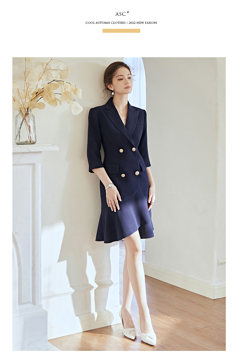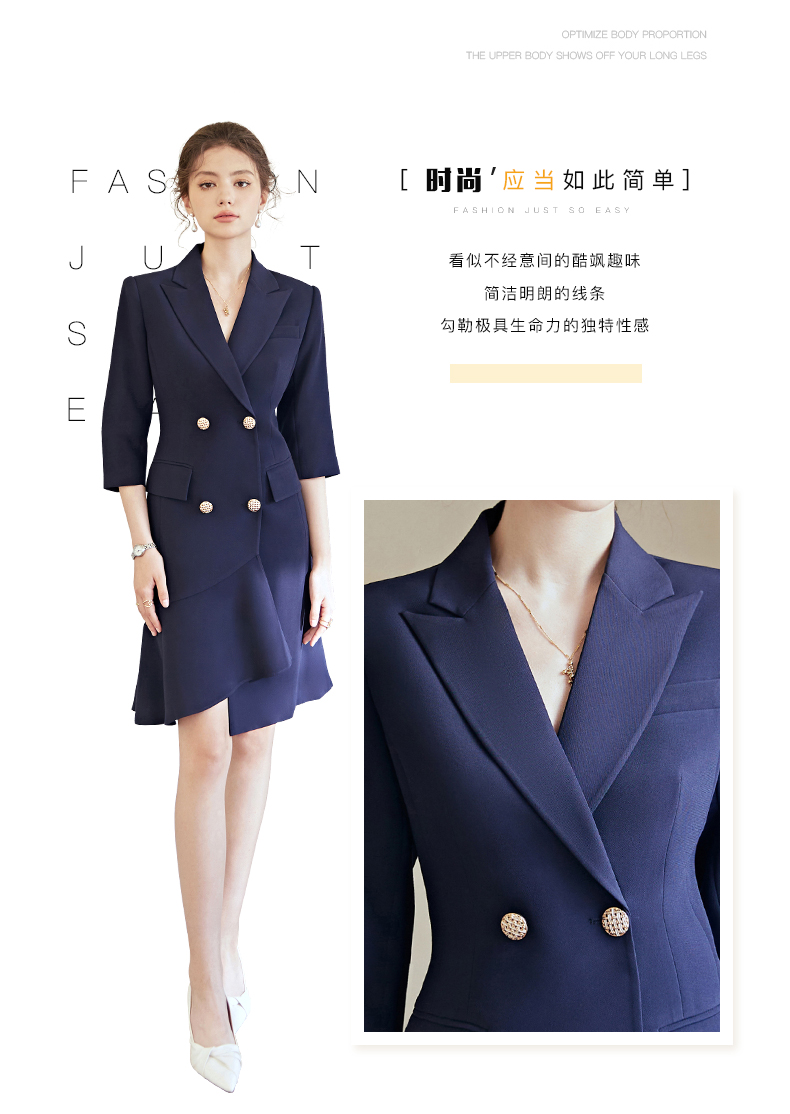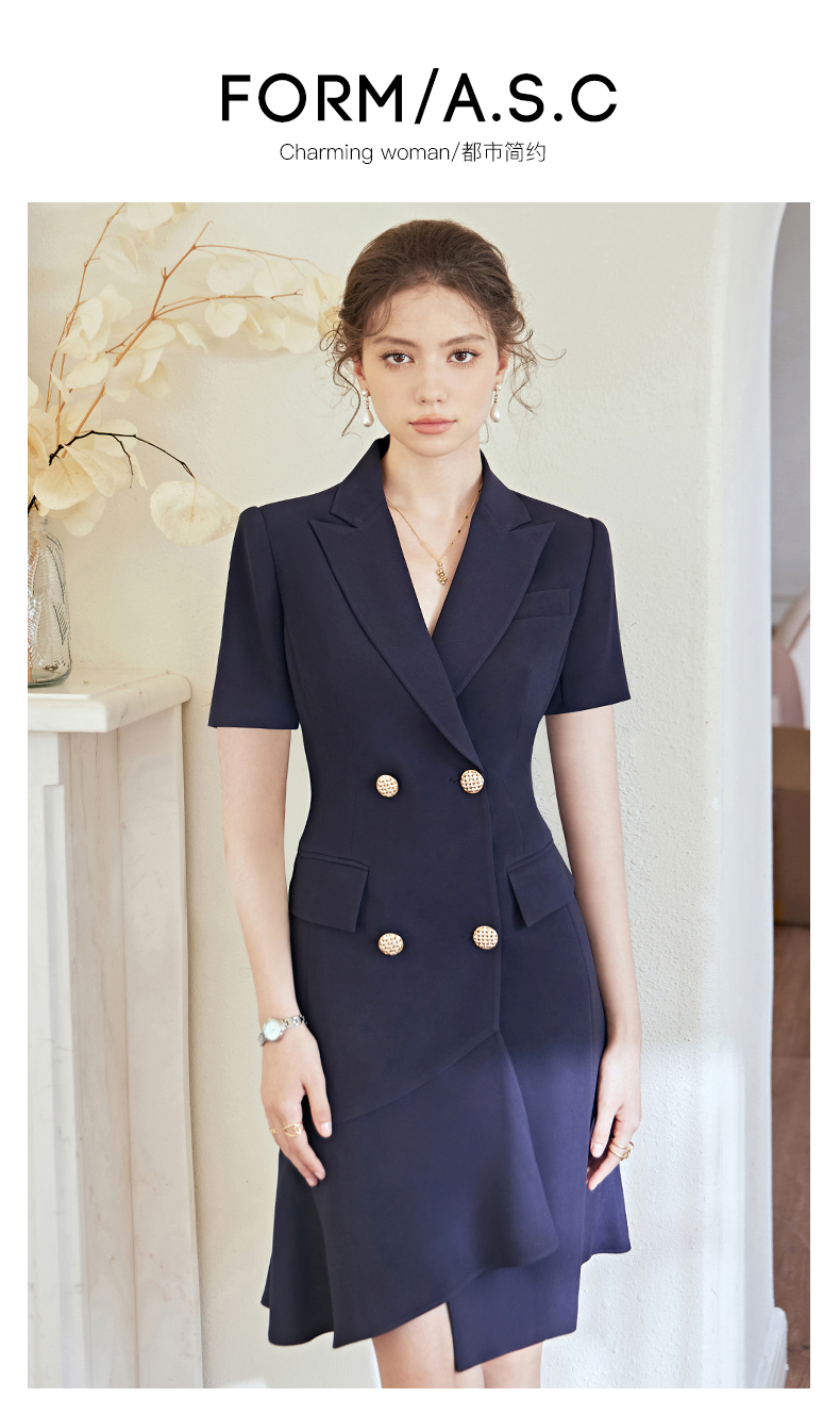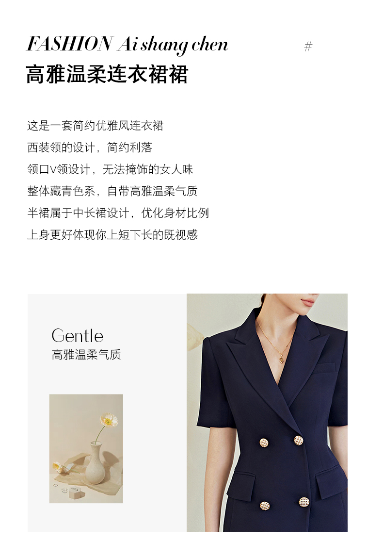 艾尚臣职业连衣裙女高端职场通勤气质工作服正装裙子短袖西装裙夏