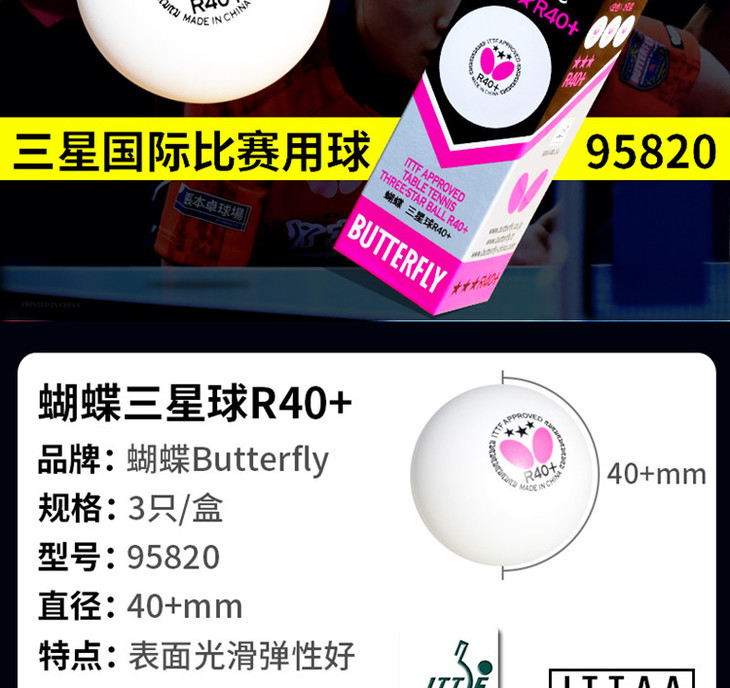 BUTTERFLY 蝴蝶 新材料R40+有缝乒乓球 国球汇