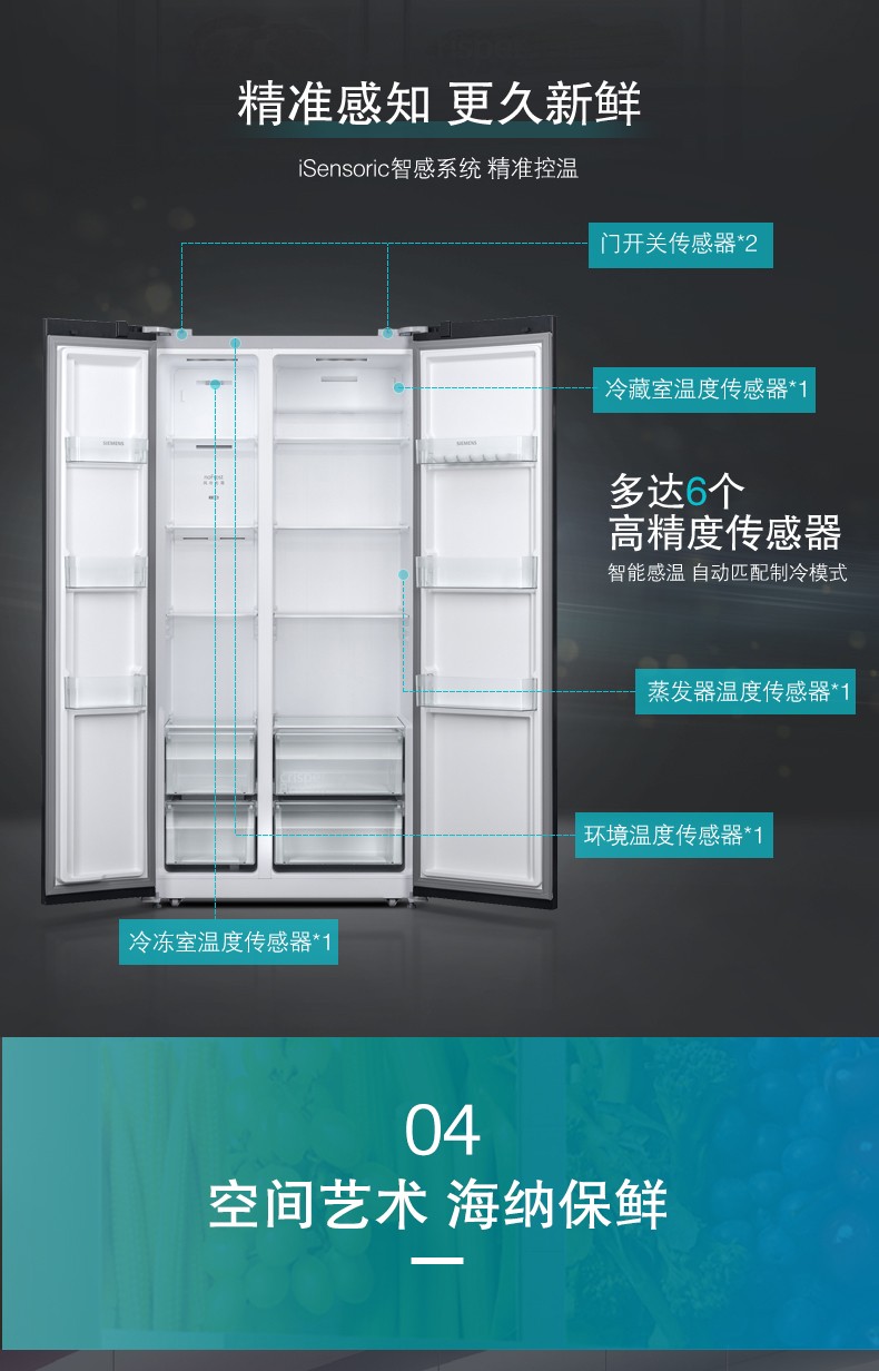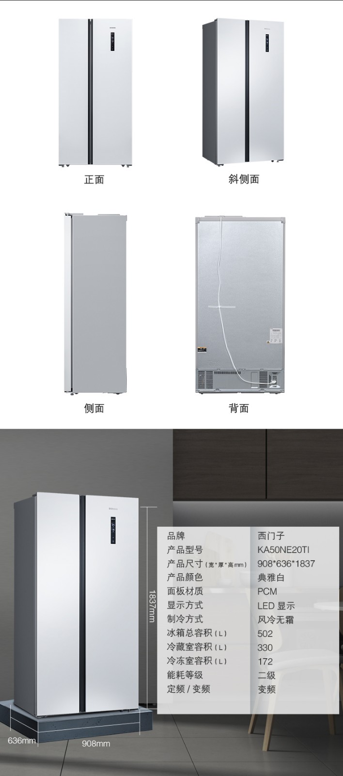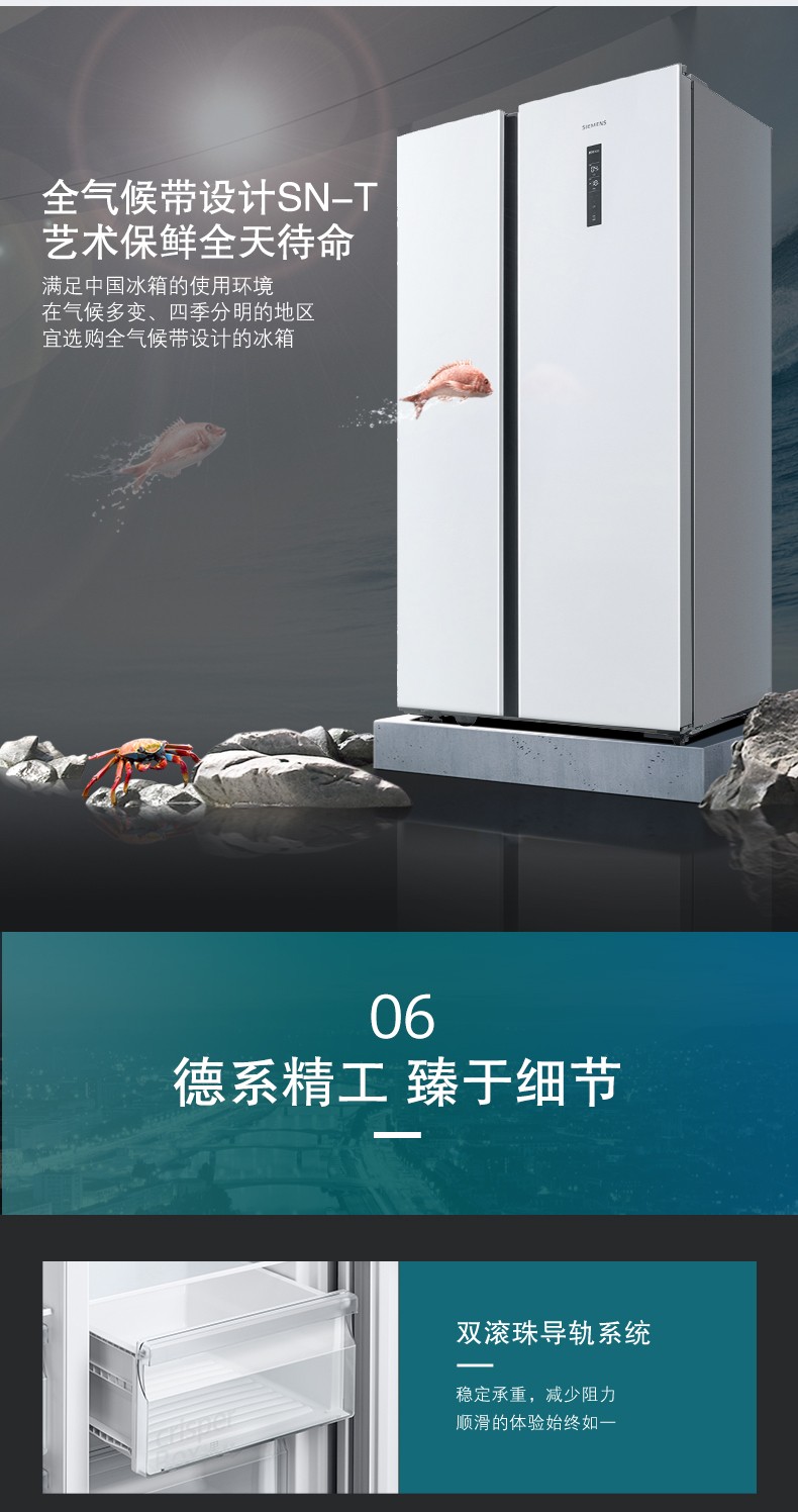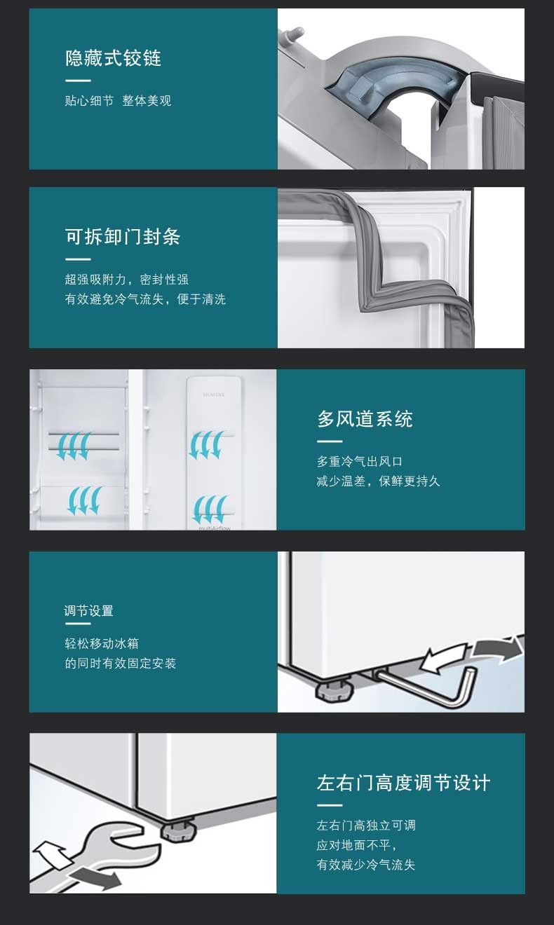 SIEMENS/西门子 风冷无霜 纤薄嵌入对开大容量家用冰箱 KA50NE20TI