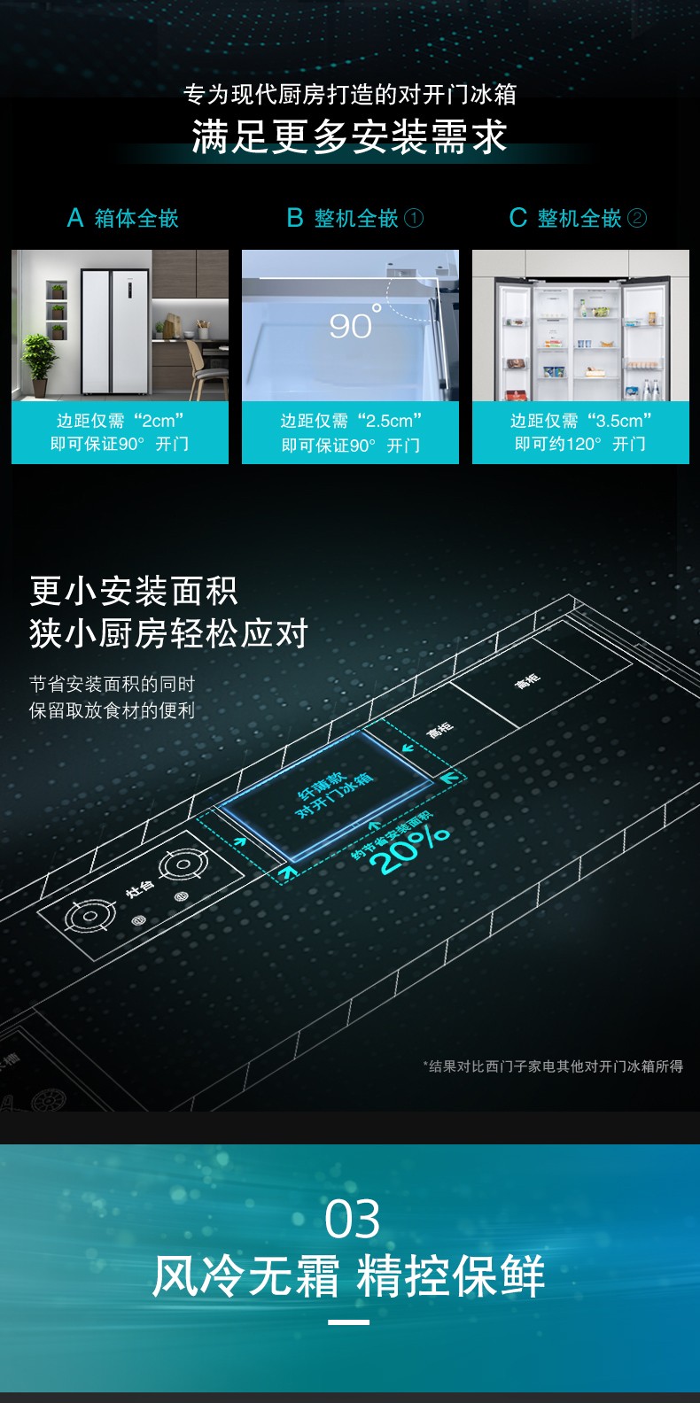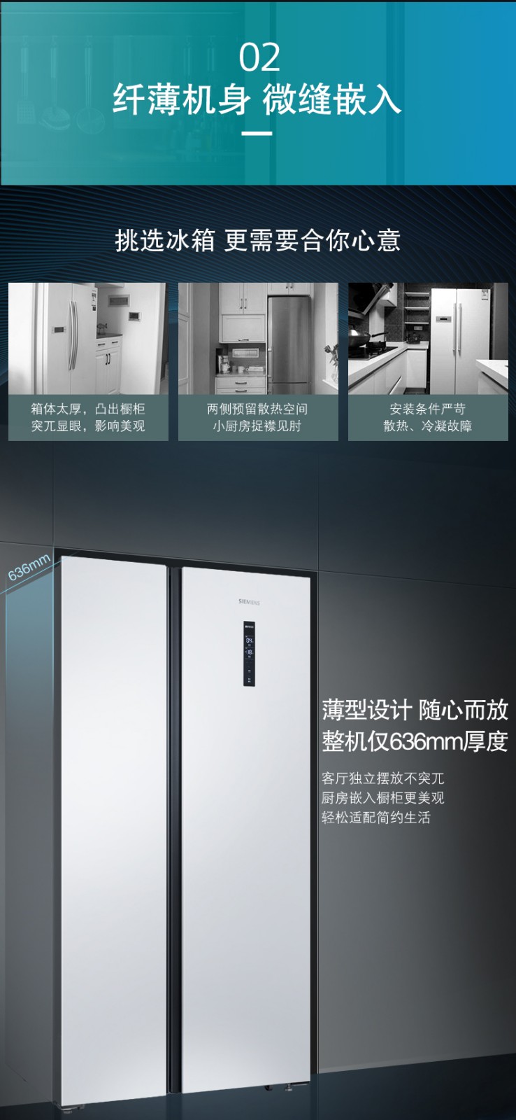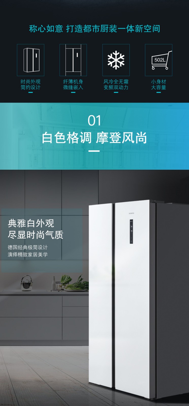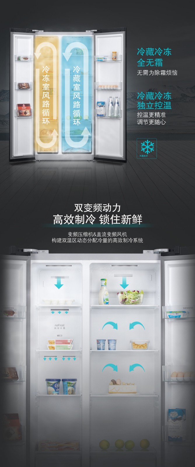 SIEMENS/西门子 风冷无霜 纤薄嵌入对开大容量家用冰箱 KA50NE20TI