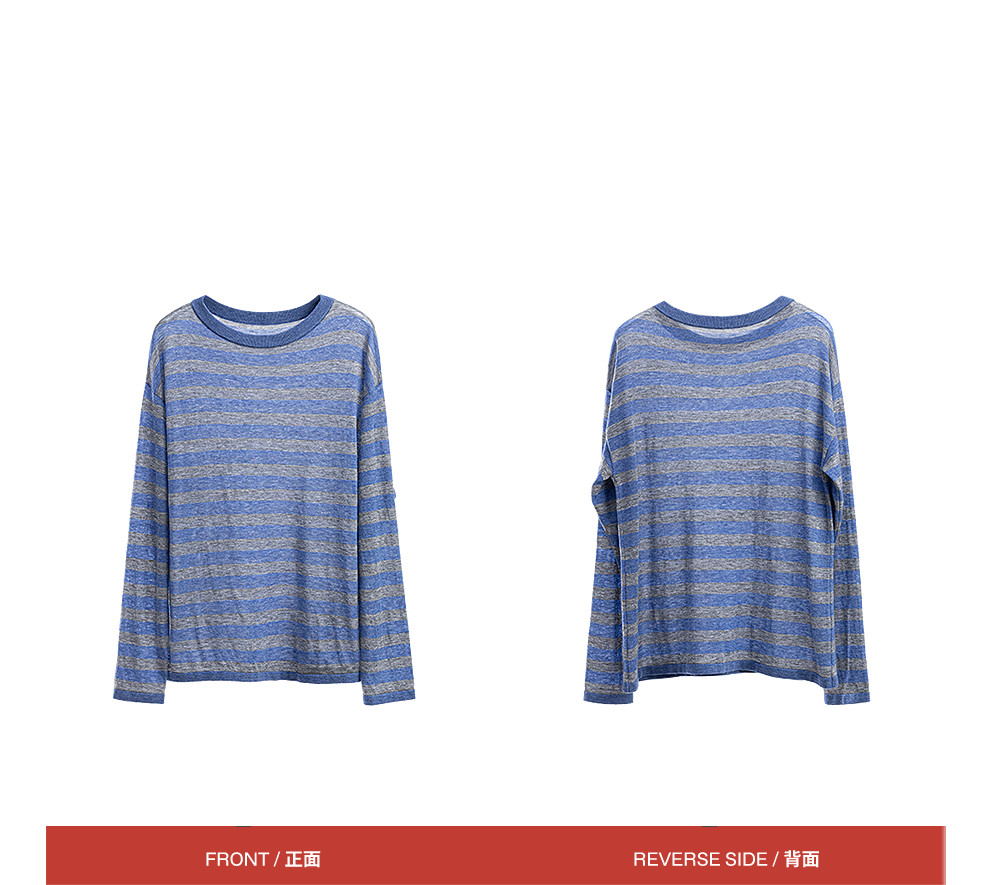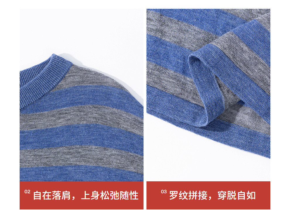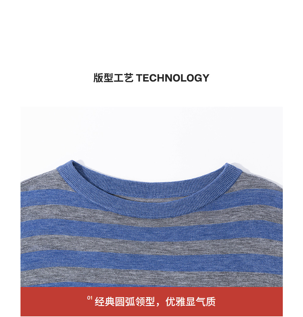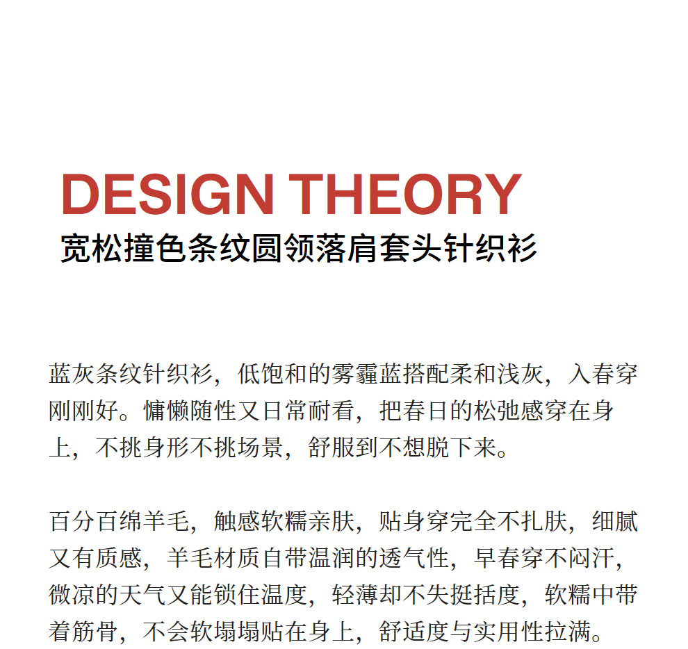 绽放165朵/绵羊毛宽松撞色条纹圆领落肩套头针织衫女外穿长袖T恤