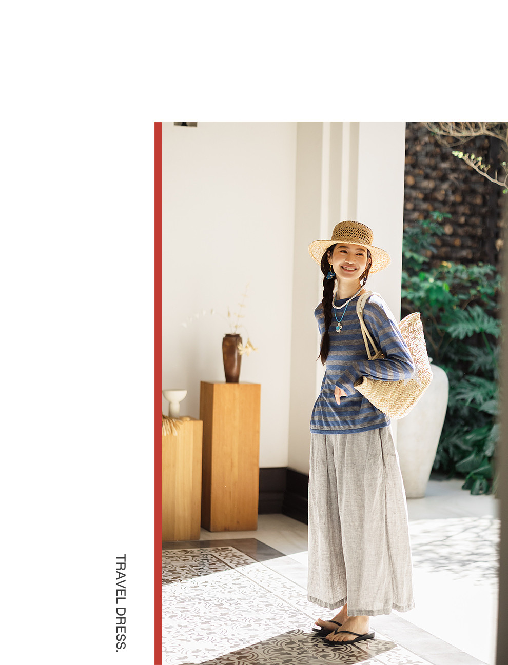 以天然亚麻为载体,融合热烈色彩与自在剪裁为身在城市、心怀远方的女性提供兼具美学与舒适的旅行着装