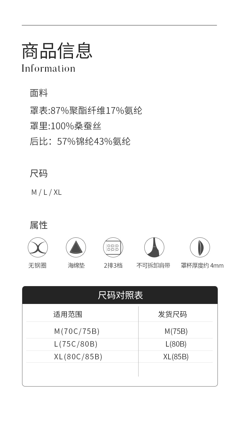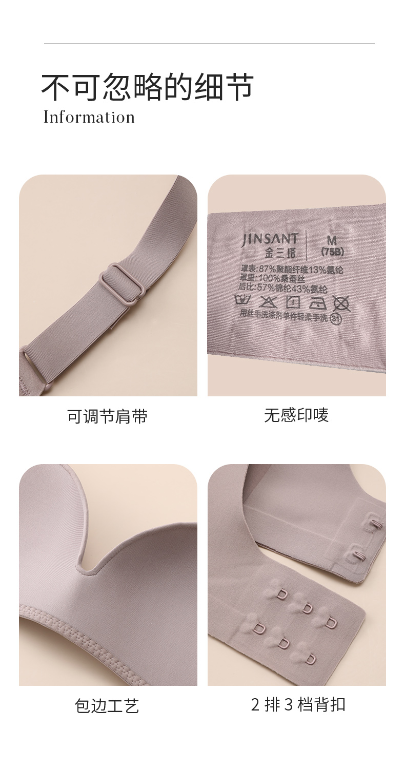 金三塔桑蚕丝光面无痕内衣新品女聚拢无钢圈舒适透气 运动文胸 NZFDC304