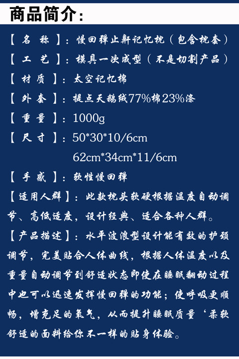 止鼾枕 记忆棉枕芯护颈枕保健脊椎枕